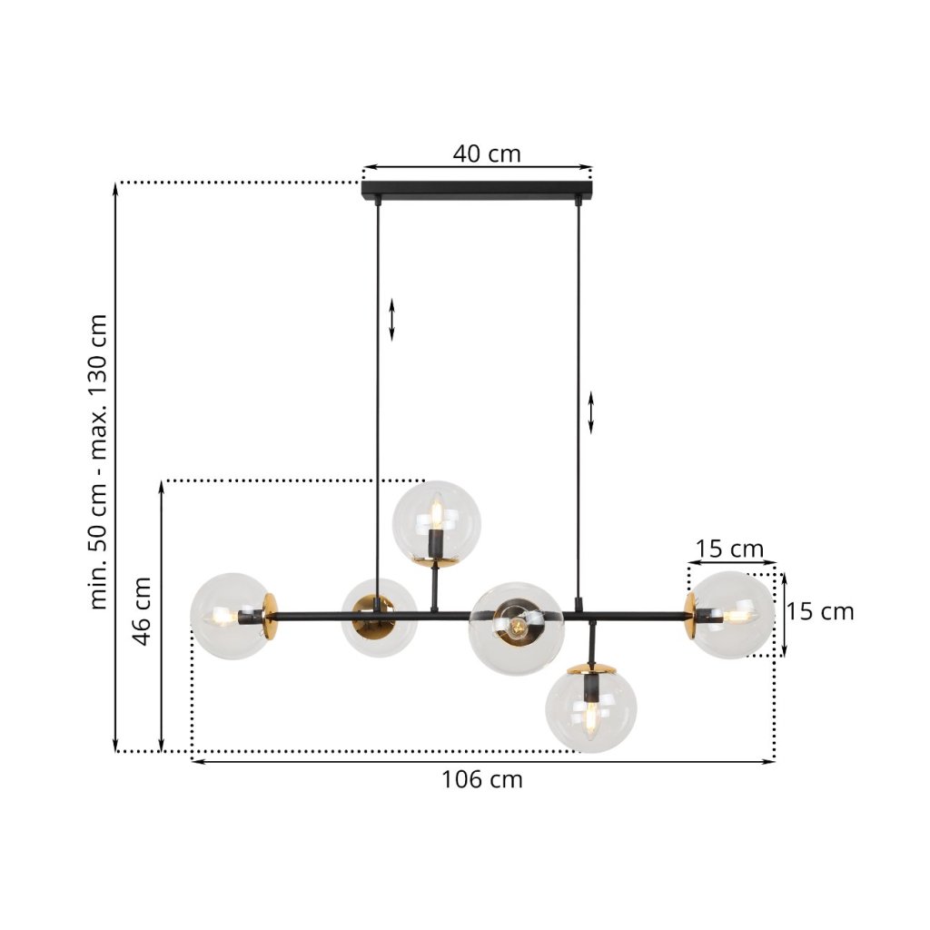 Závěsné svítidlo Paris, 6x čiré skleněné stínítko, B/G