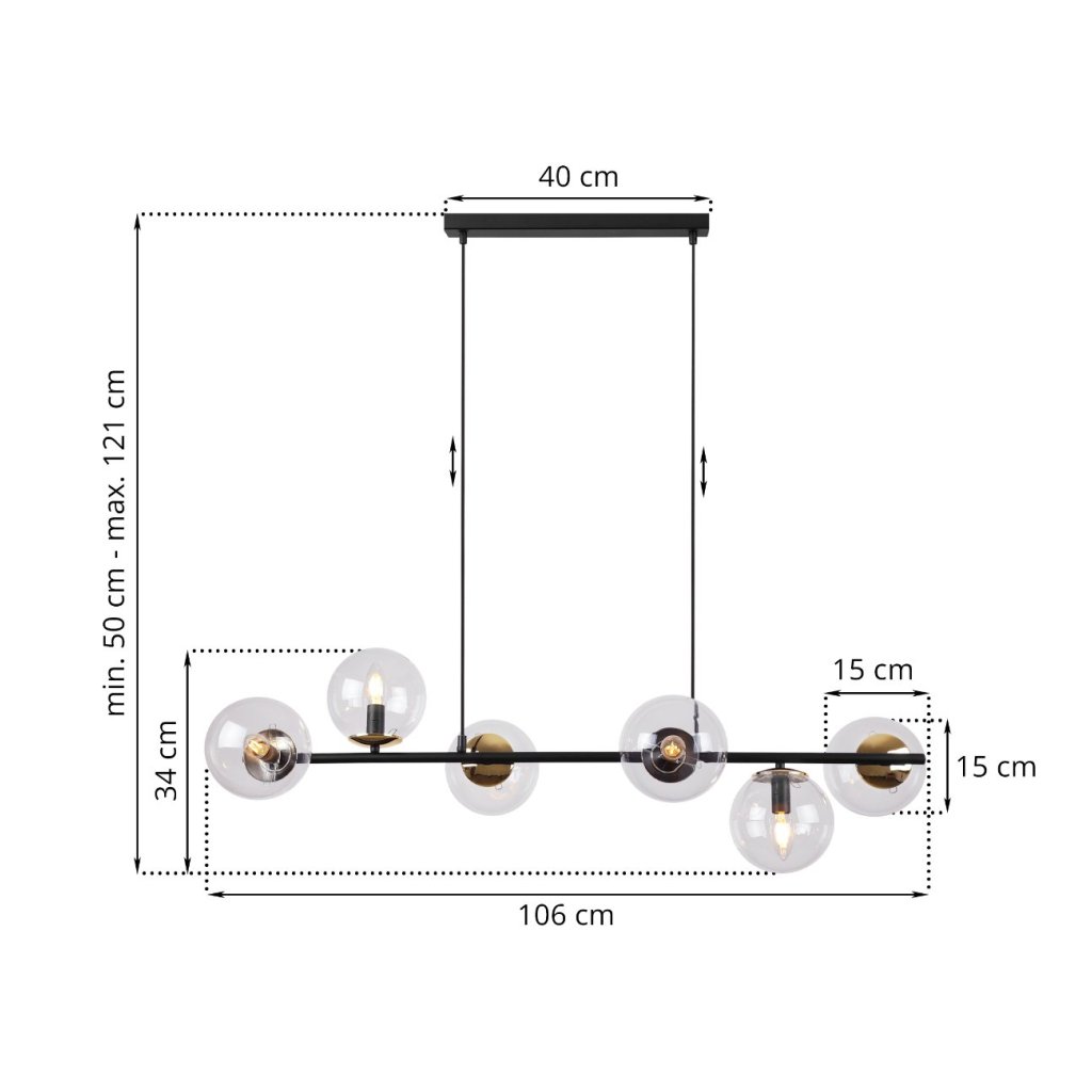 Závěsné svítidlo Paris, 6x čiré skleněné stínítko, B/G