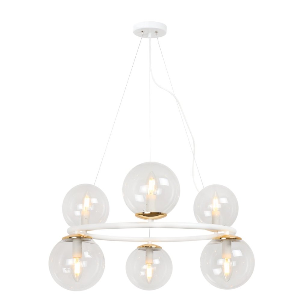 Závěsné svítidlo Paris, 6x čiré skleněné stínítko, W/G, O