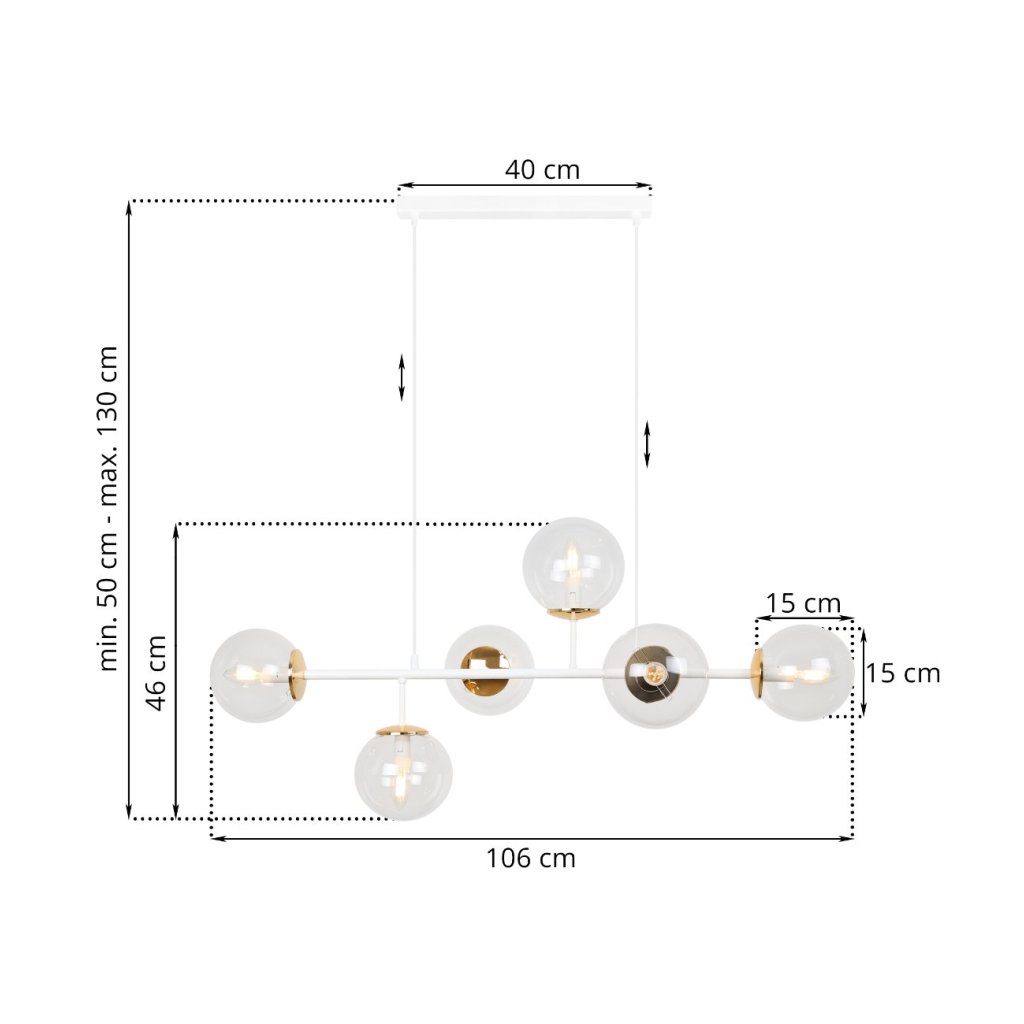 Závěsné svítidlo Paris, 6x čiré skleněné stínítko, W/G