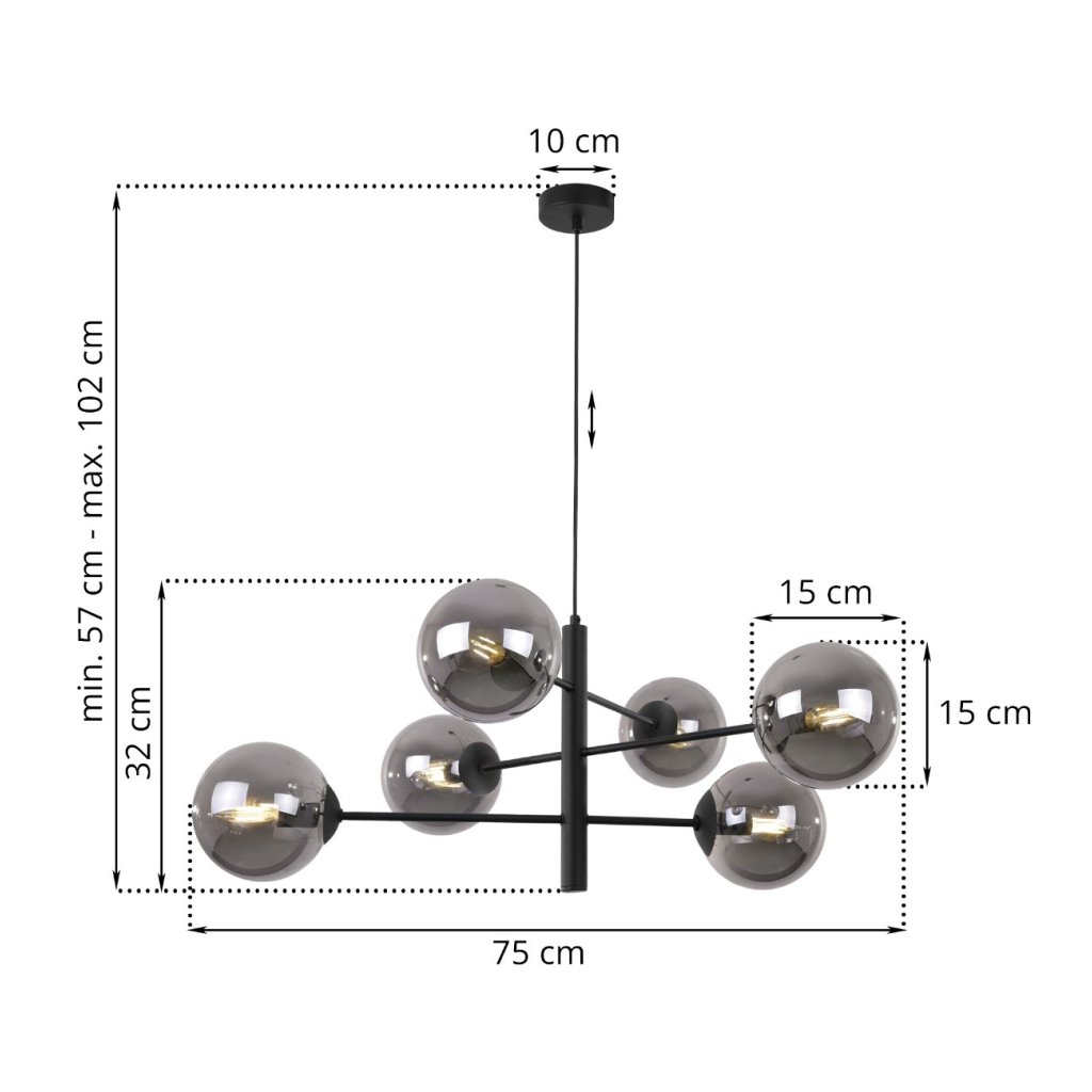 Závěsné svítidlo Paris, 6x grafitové skleněné stínítko, B, X
