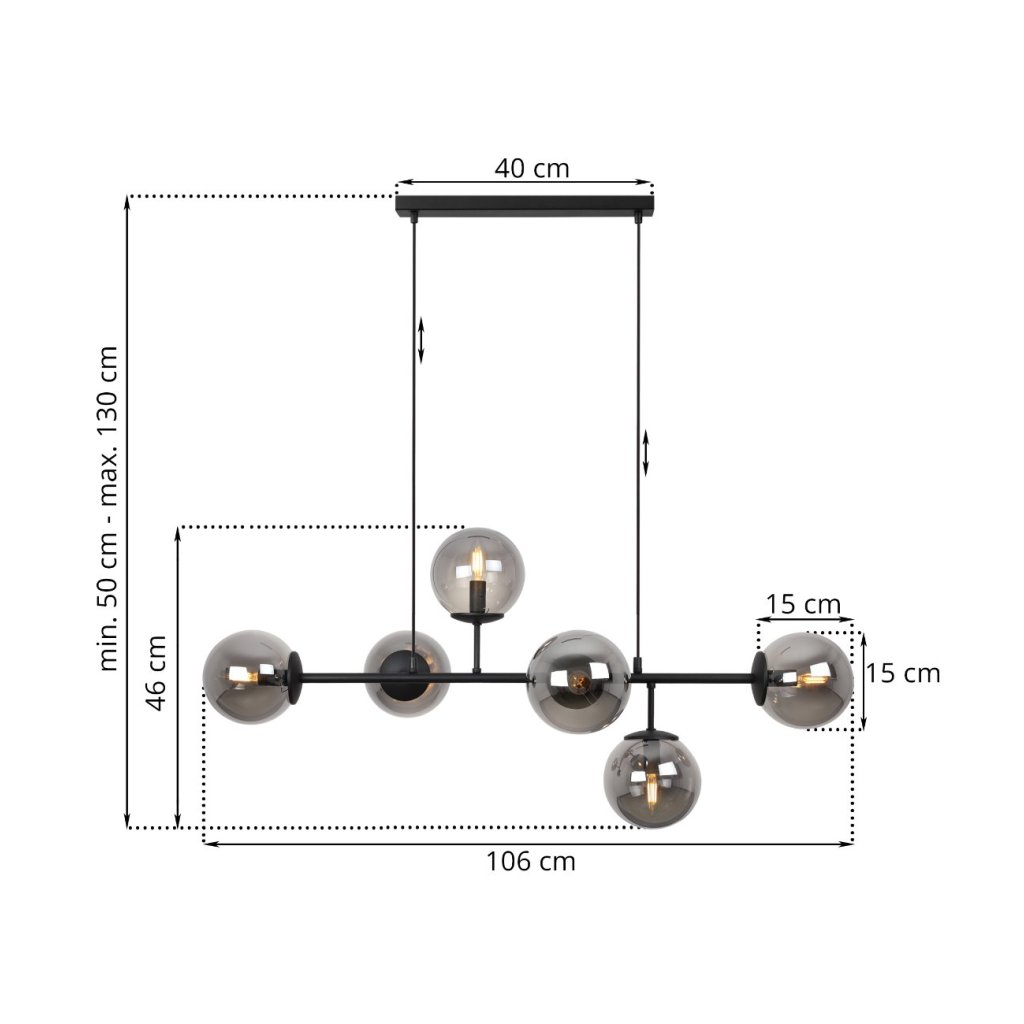 Závěsné svítidlo Paris, 6x grafitové skleněné stínítko, B