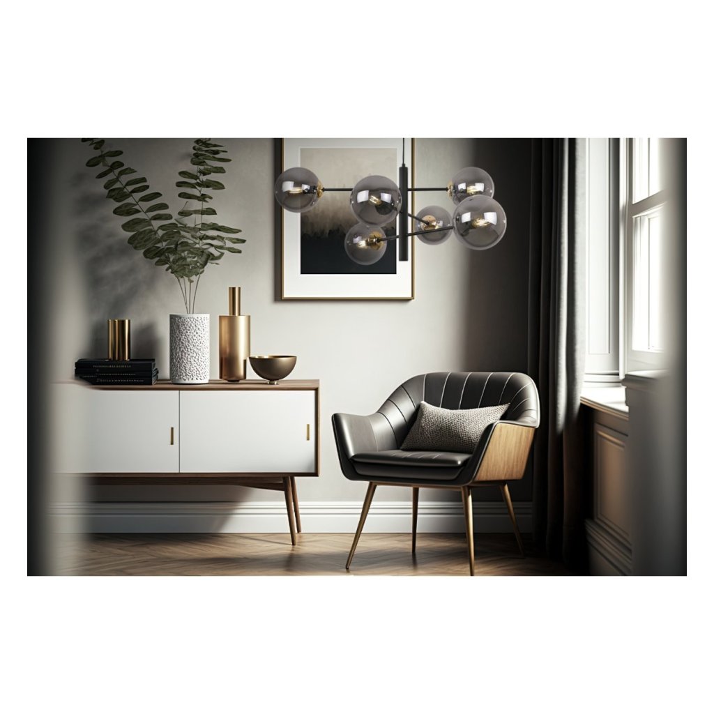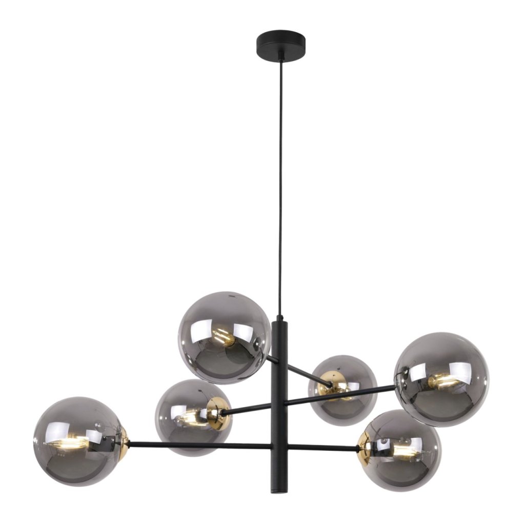 Závěsné svítidlo Paris, 6x grafitové skleněné stínítko, B/G, X