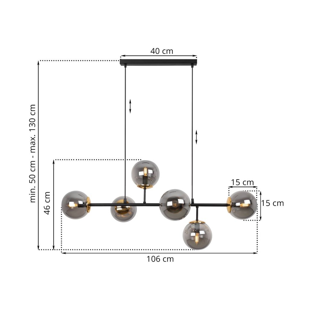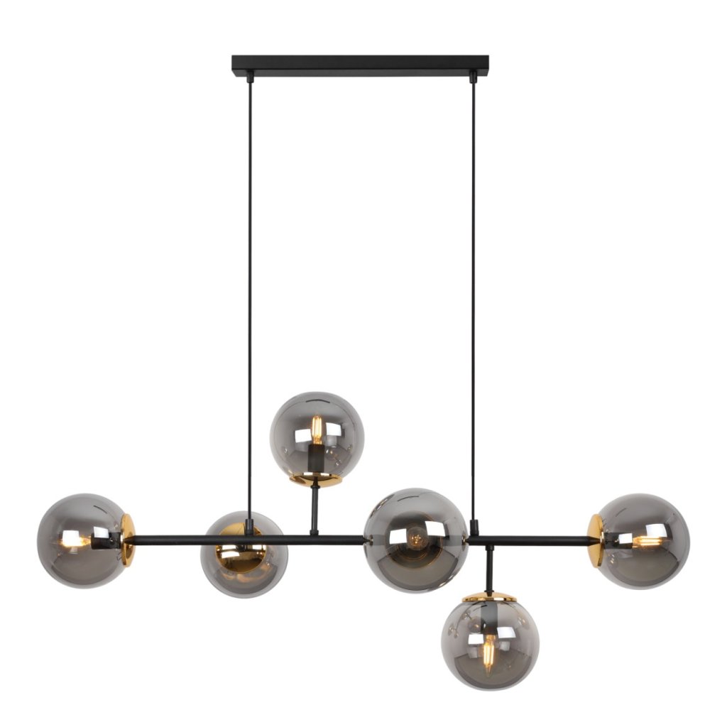 Závěsné svítidlo Paris, 6x grafitové skleněné stínítko, B/G