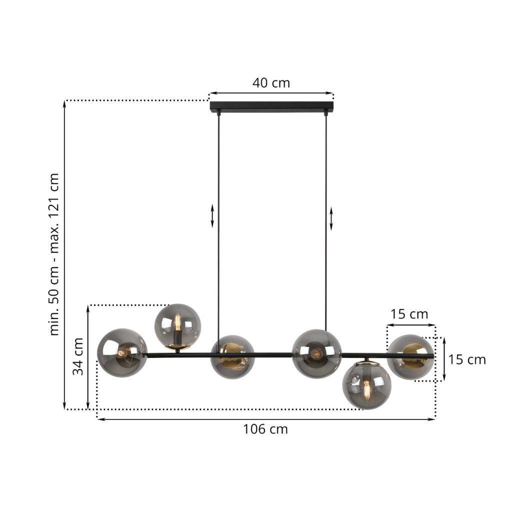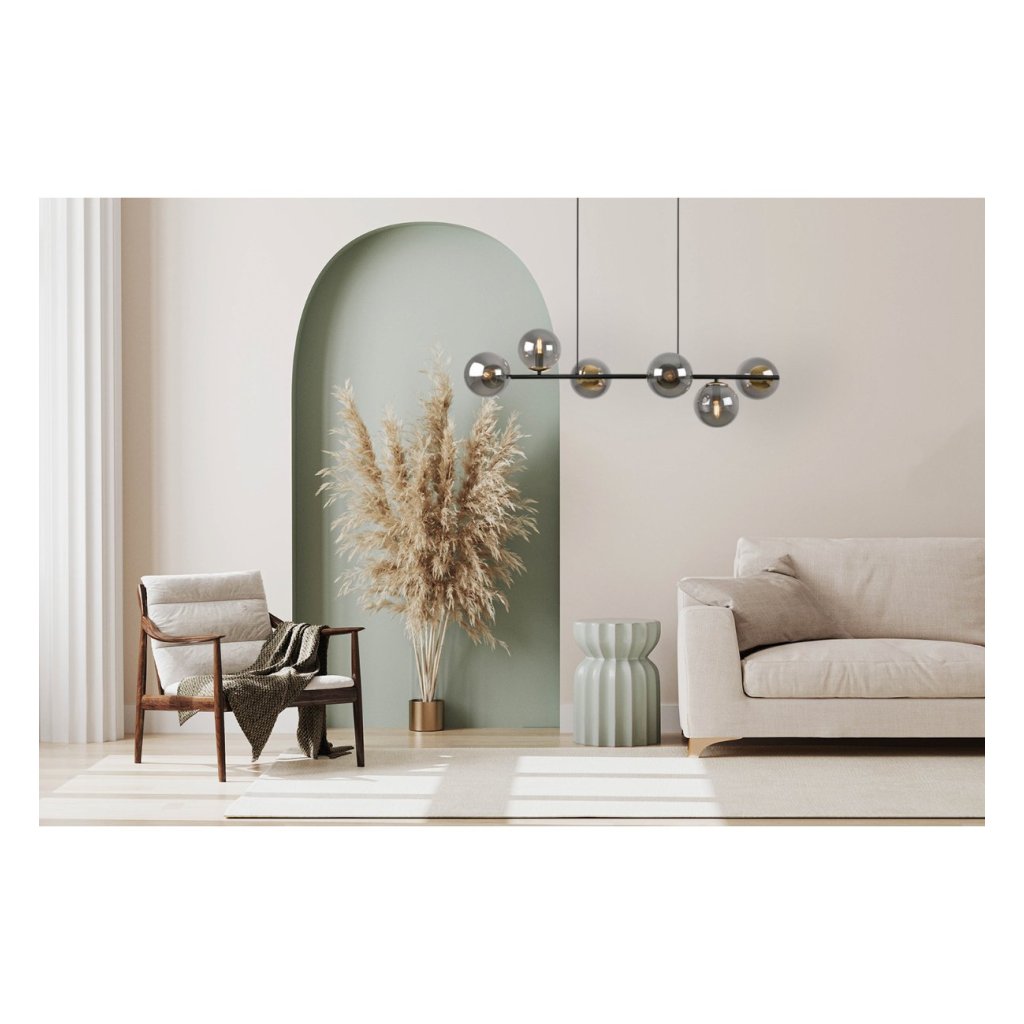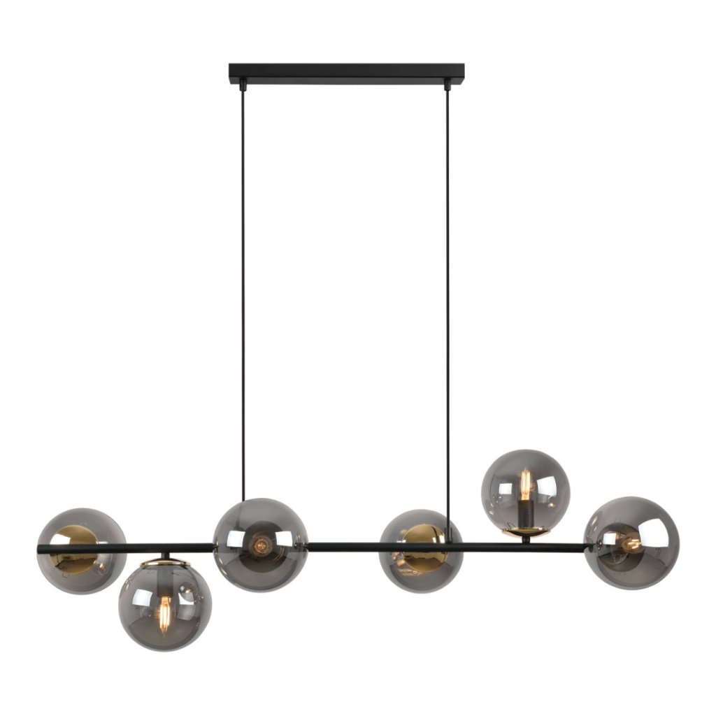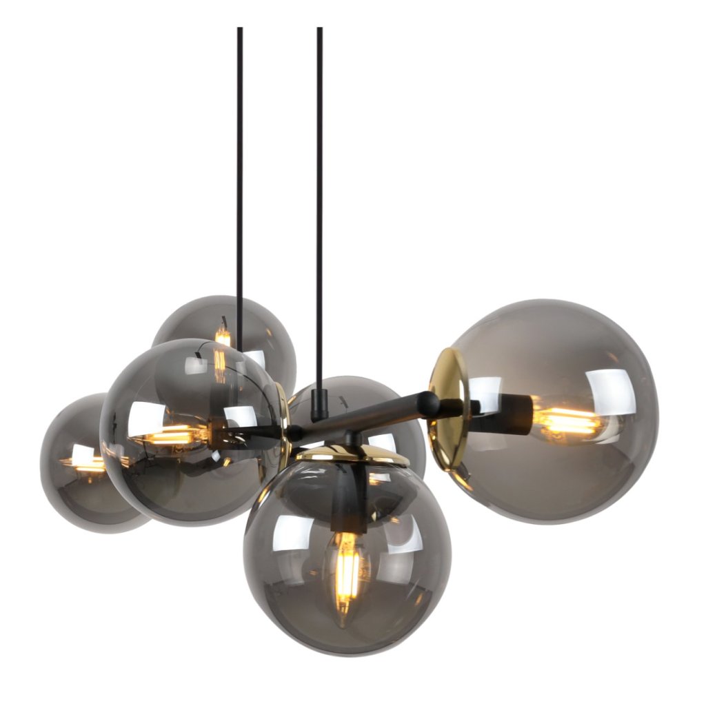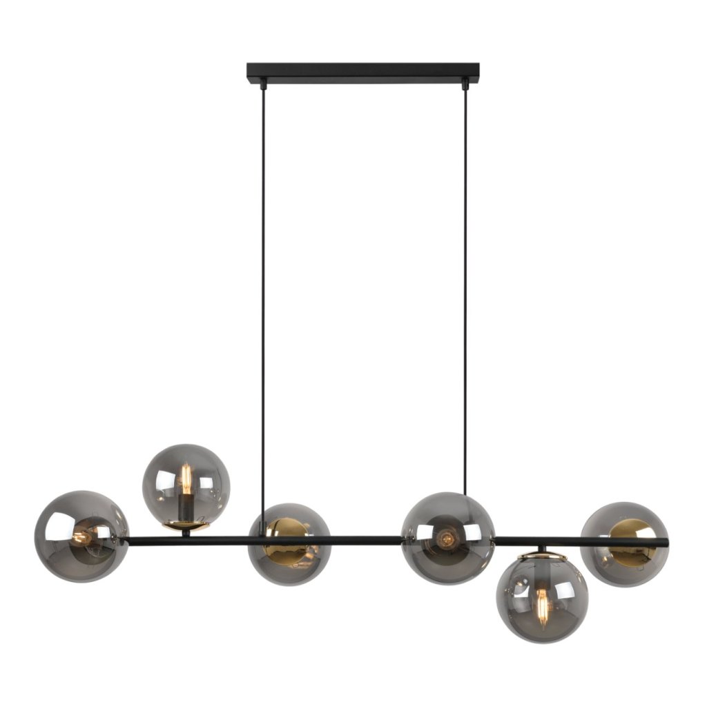 Závěsné svítidlo Paris, 6x grafitové skleněné stínítko, B/G