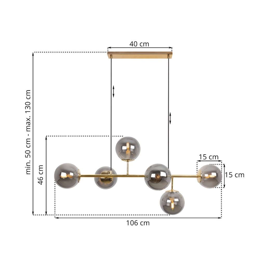 Závěsné svítidlo Paris, 6x grafitové skleněné stínítko, G