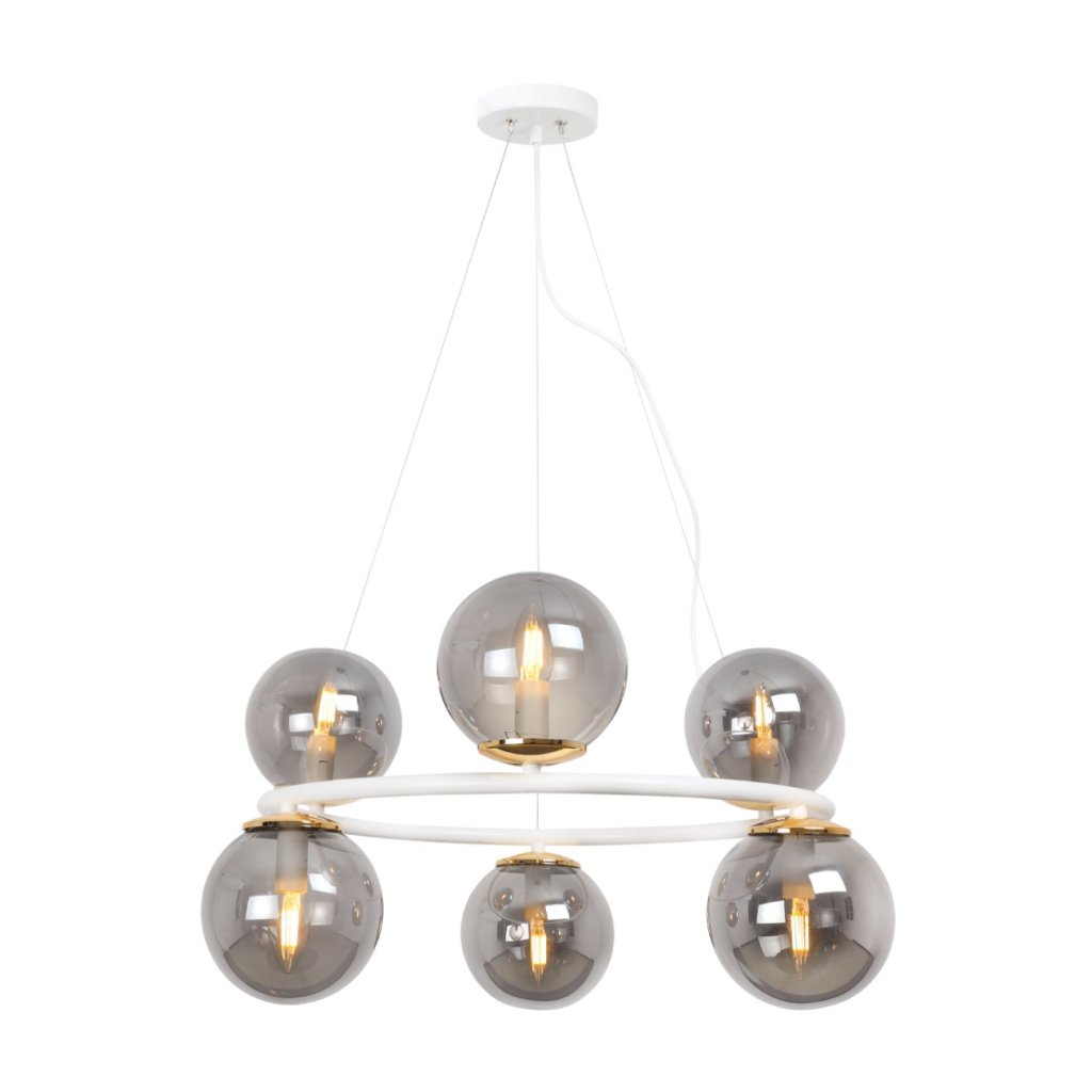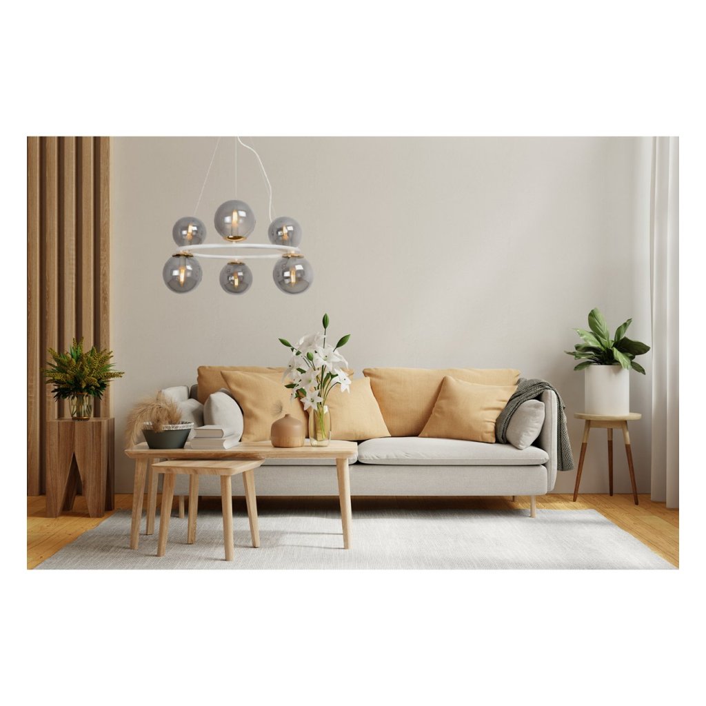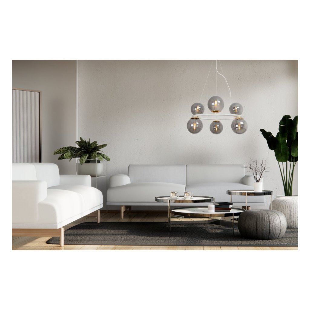 Závěsné svítidlo Paris, 6x grafitové skleněné stínítko, W/G, O