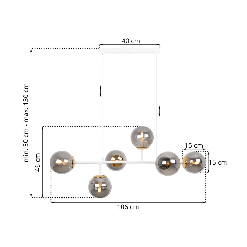 Závěsné svítidlo Paris, 6x grafitové skleněné stínítko, W/G