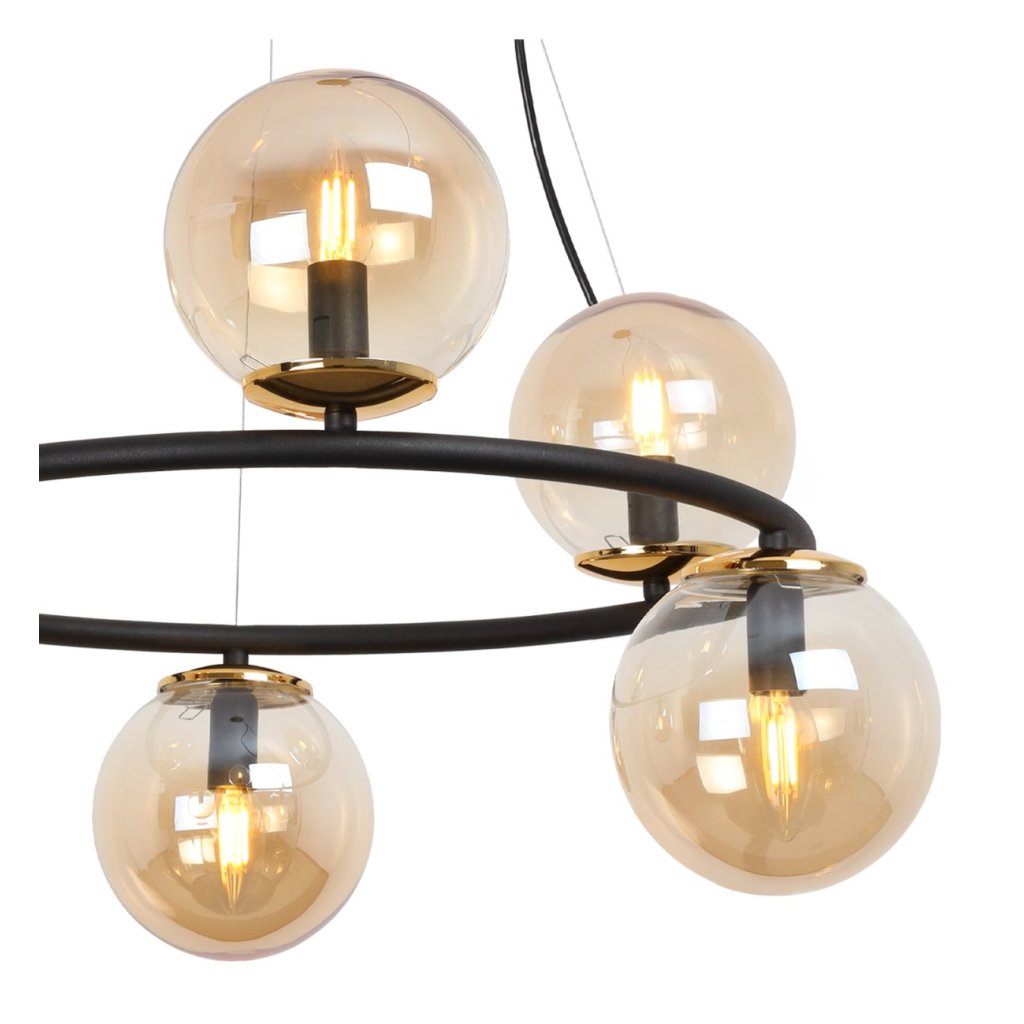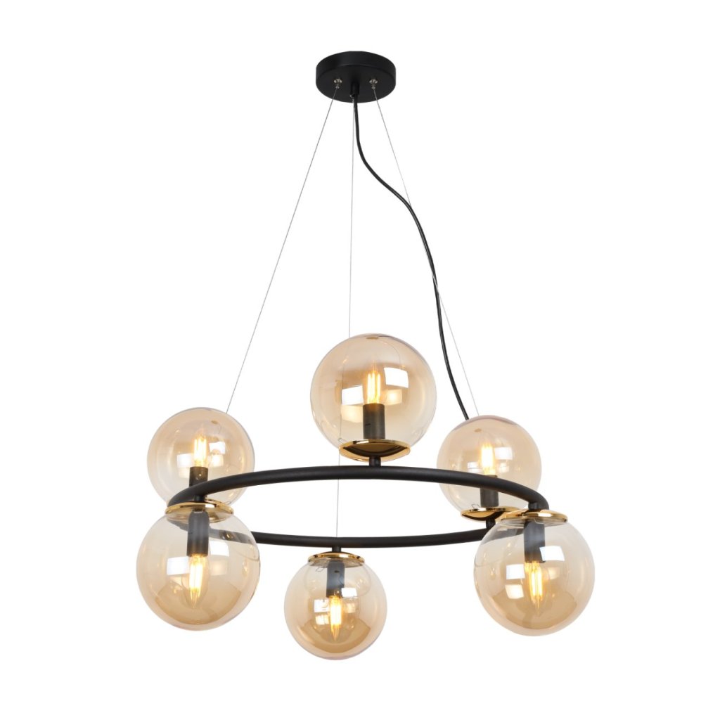 Závěsné svítidlo Paris, 6x medové skleněné stínítko, B/G, O