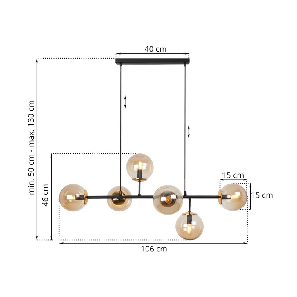 Závěsné svítidlo Paris, 6x medové skleněné stínítko, B/G