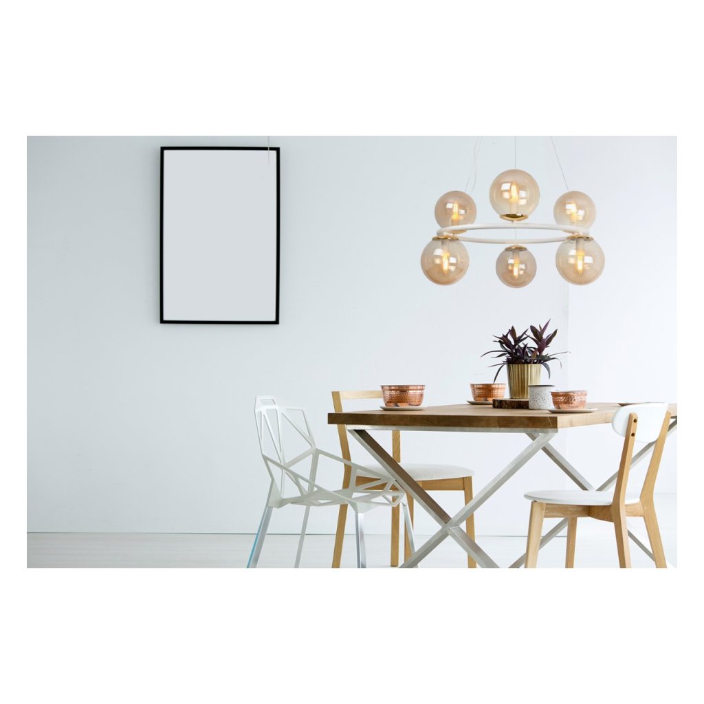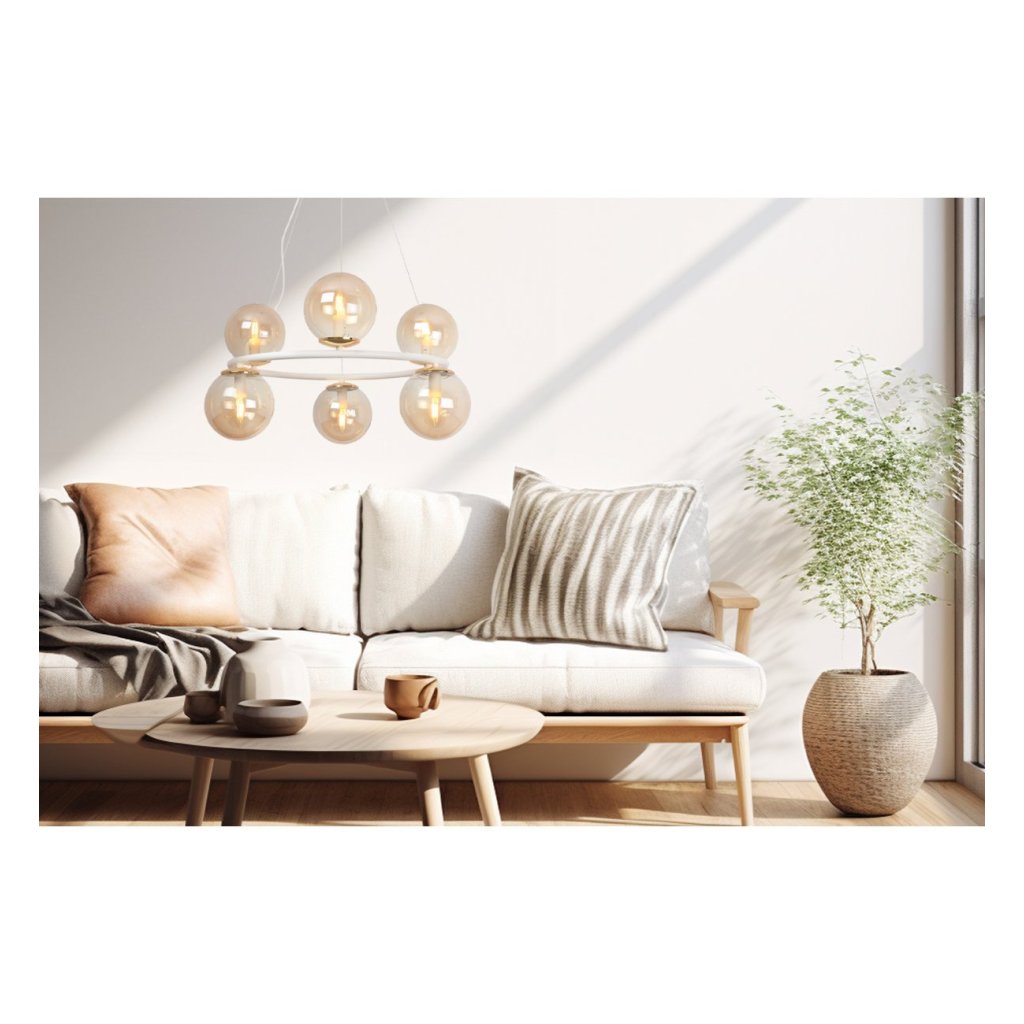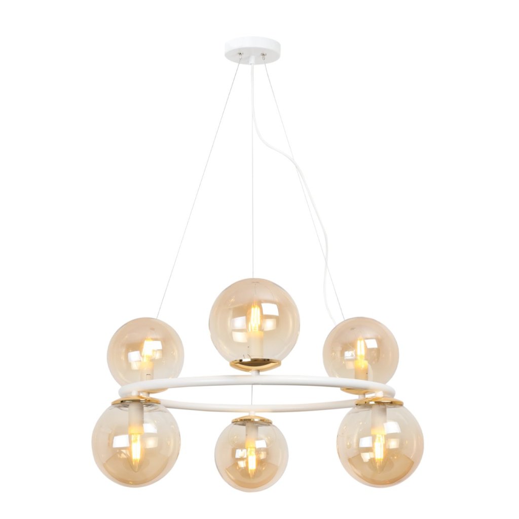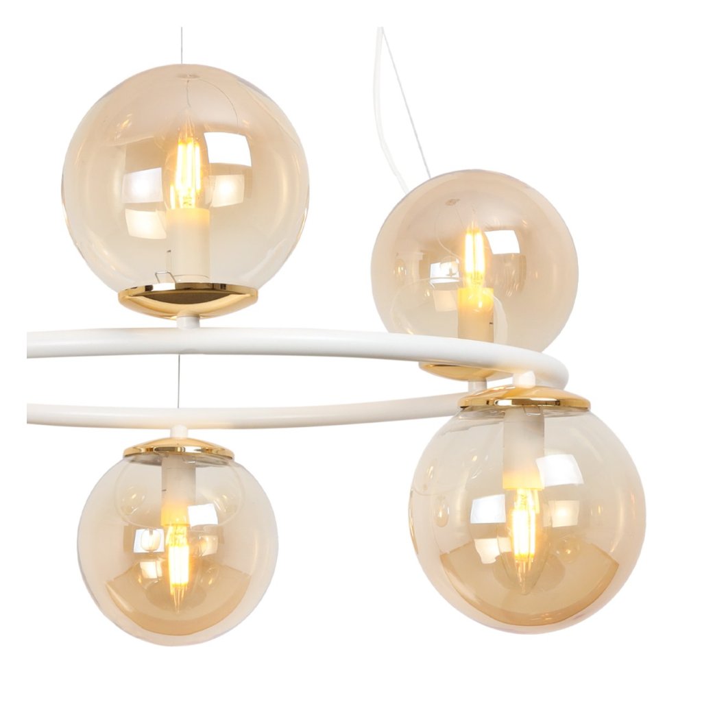 Závěsné svítidlo Paris, 6x medové skleněné stínítko, W/G, O