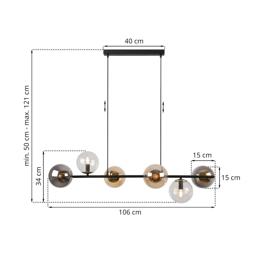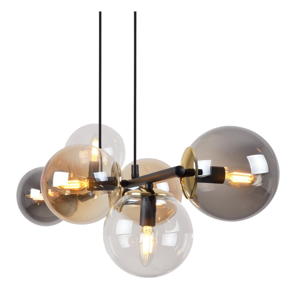 Závěsné svítidlo Paris, 6x skleněné stínítko (mix 3 barev), B/G