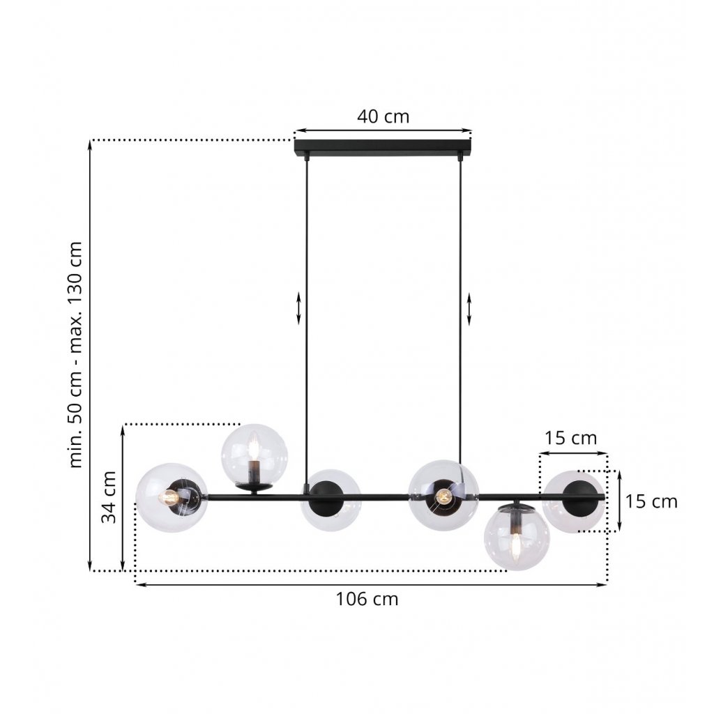 Závěsné svítidlo Paris, 6x transparentní skleněné stínítko, B
