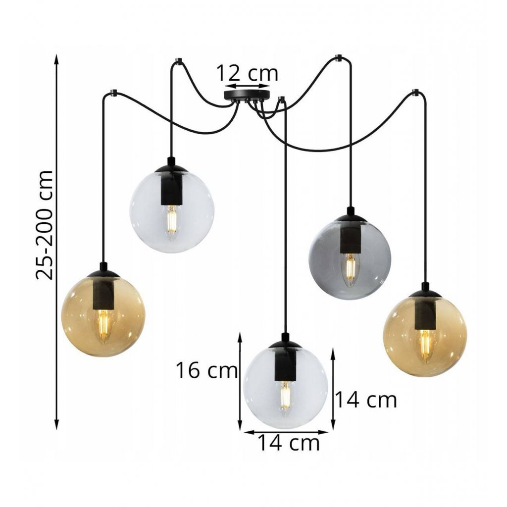 Závěsné svítidlo Paris Spider, 5x skleněné stínítko (mix 3 barev)