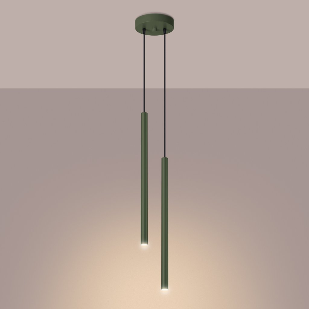 Závěsné svítidlo Pastelo, 2x olivové kovové stínítko,
