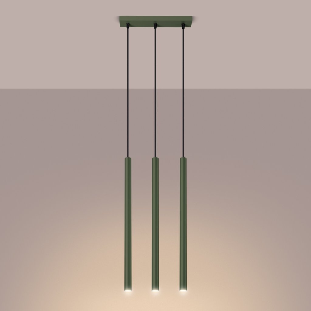 Závěsné svítidlo Pastelo, 3x olivové kovové stínítko,