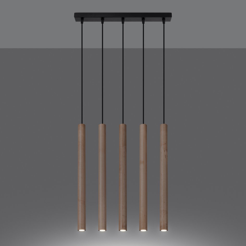 Závěsné svítidlo Pastelo, 5x dřevěné stínítko