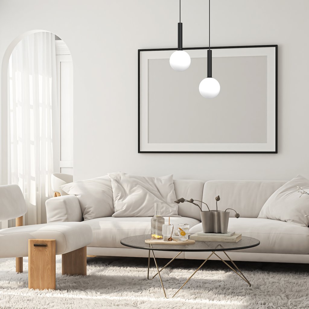 Závěsné svítidlo PLAY s jedním bílým skleněným stínítkem v černé kovové konstrukci představuje ideální volbu pro ty, kteří hledají moderní a zároveň univerzální řešení osvětlení .