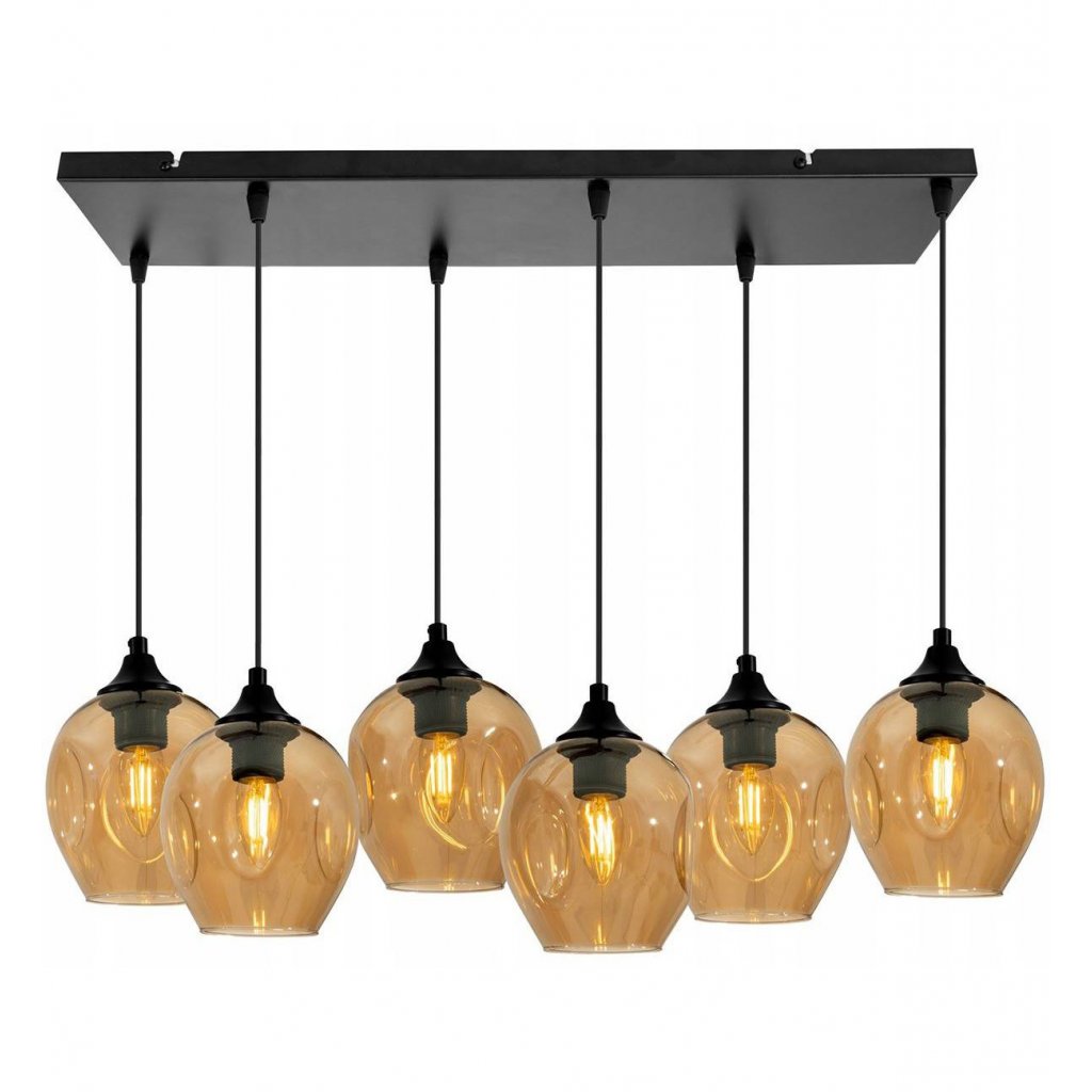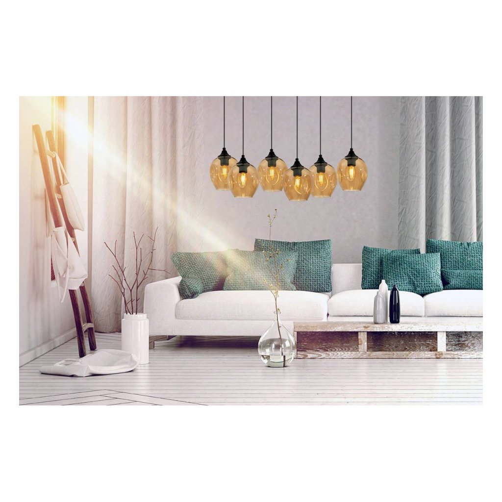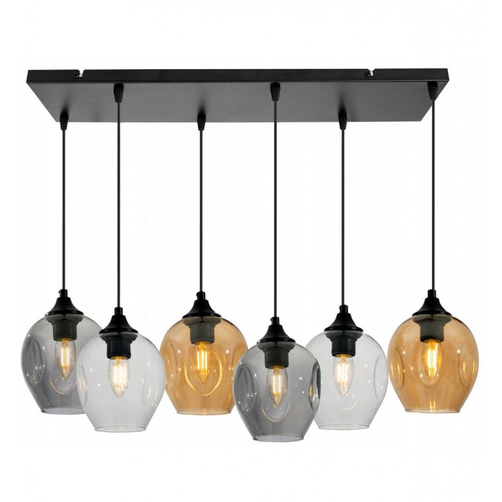 Závěsné svítidlo Praga, 6x skleněné stínítko (mix 3 barev)