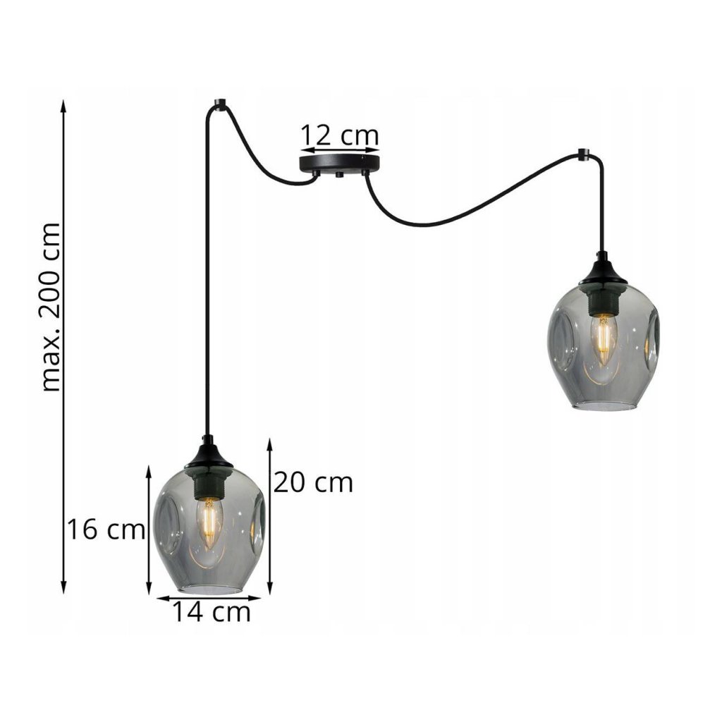 Závěsné svítidlo Praga Spider, 2x skleněné stínítko (mix 3 barev)