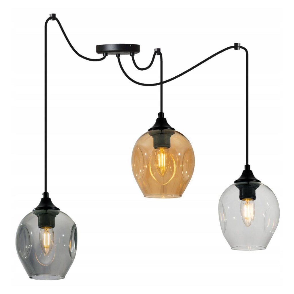 Závěsné svítidlo Praga Spider, 3x skleněné stínítko, mix 3 barev