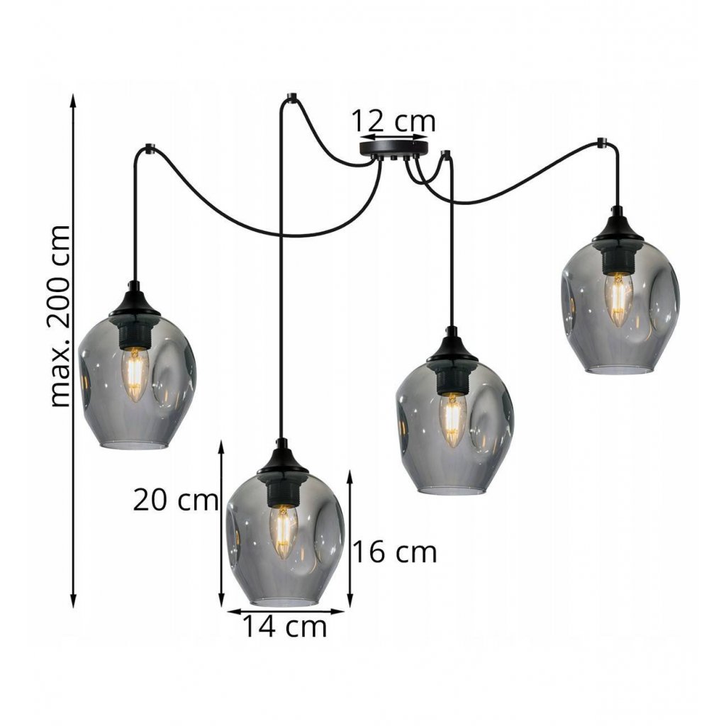 Závěsné svítidlo Praga Spider, 4x skleněné stínítko (mix 3 barev)