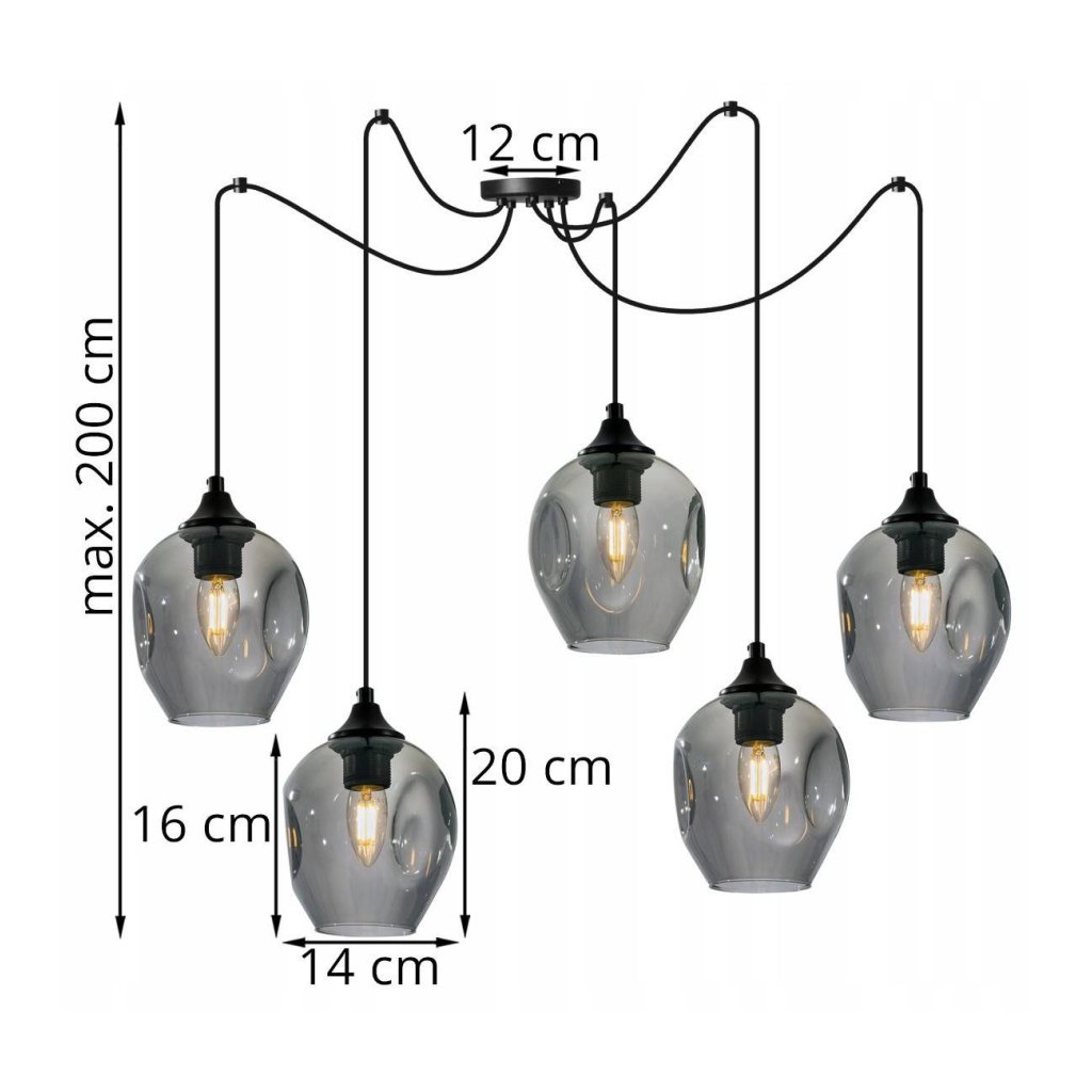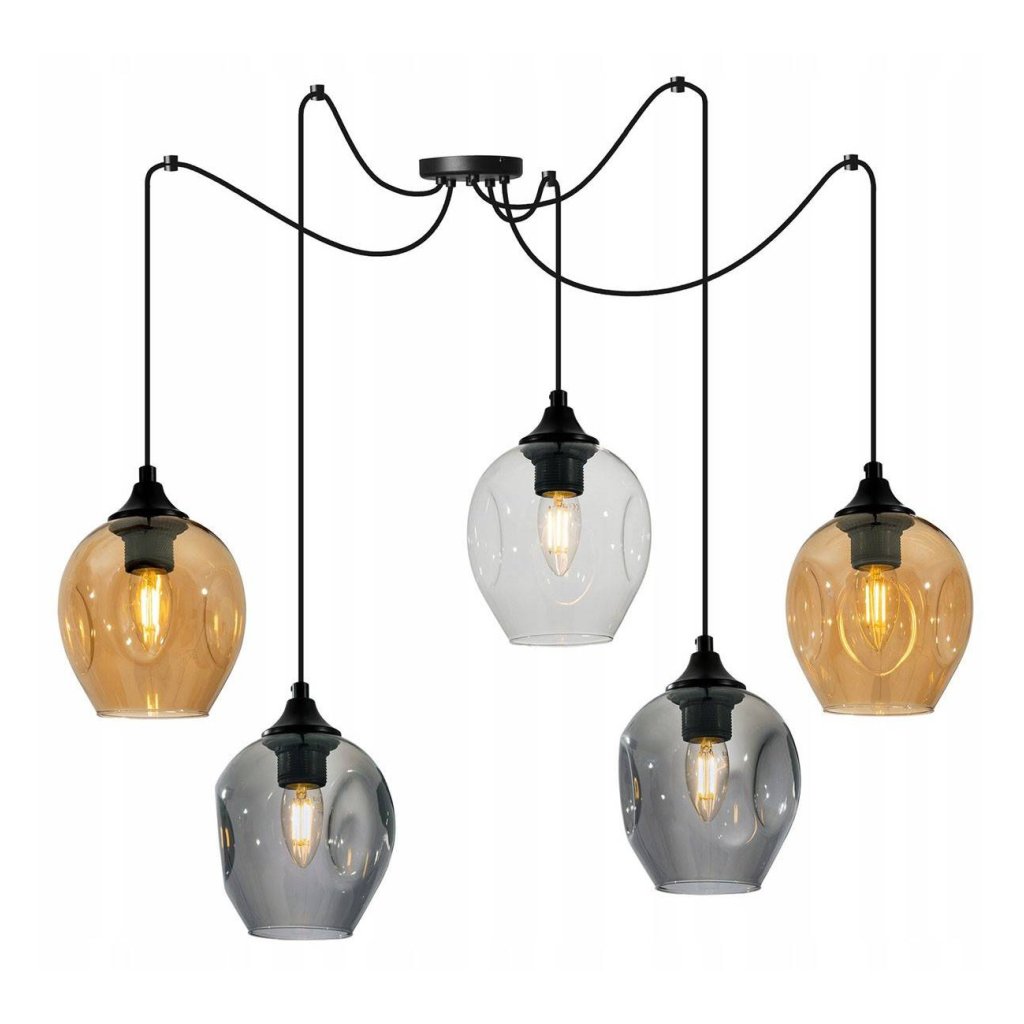 Závěsné svítidlo Praga Spider, 5x skleněné stínítko (mix 3 barev)