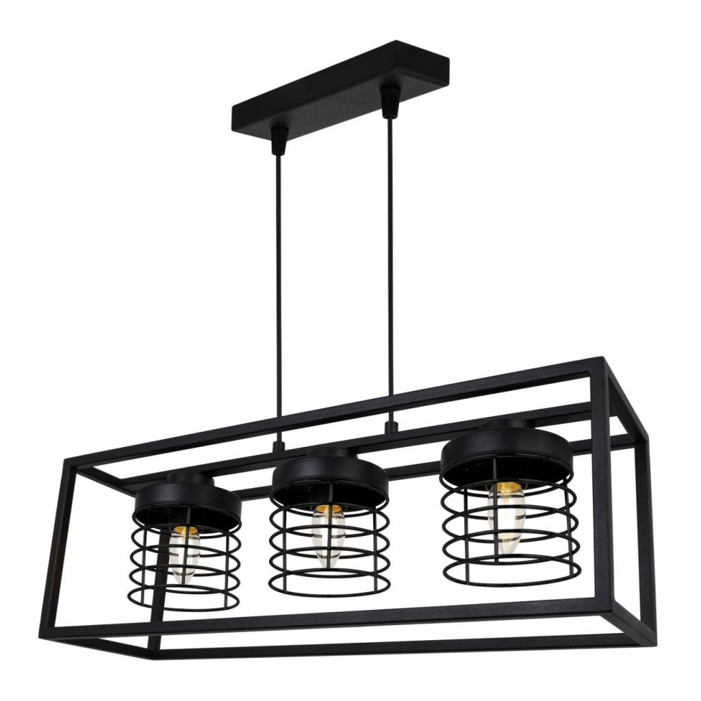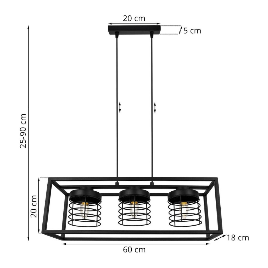 Závěsné svítidlo Rasti Cage, 3x černé drátěné stínítko v kovovém rámu