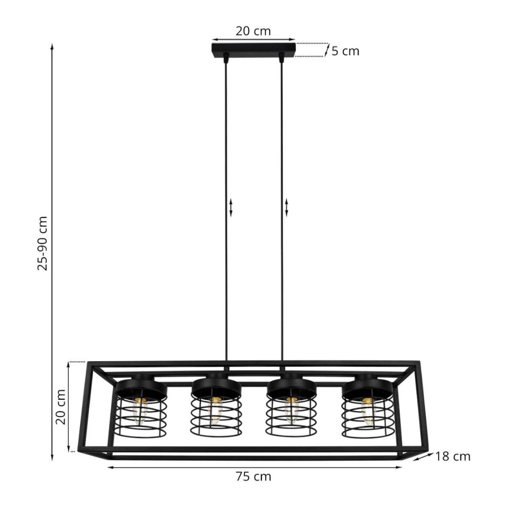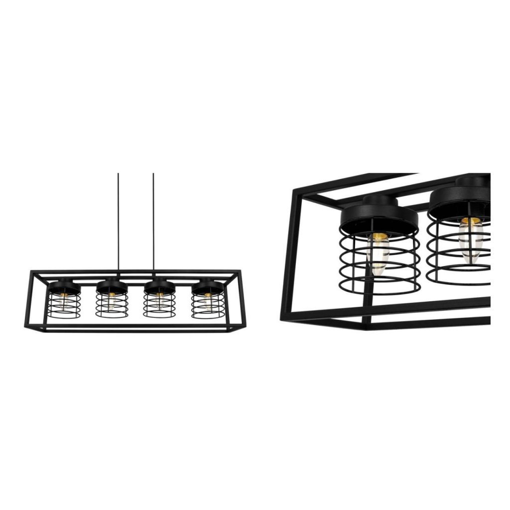 Závěsné svítidlo Rasti Cage, 4x černé drátěné stínítko v kovovém rámu