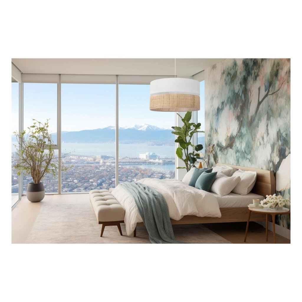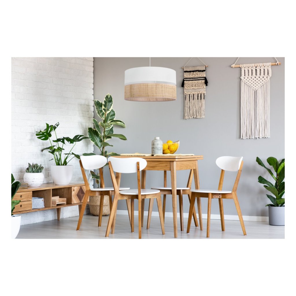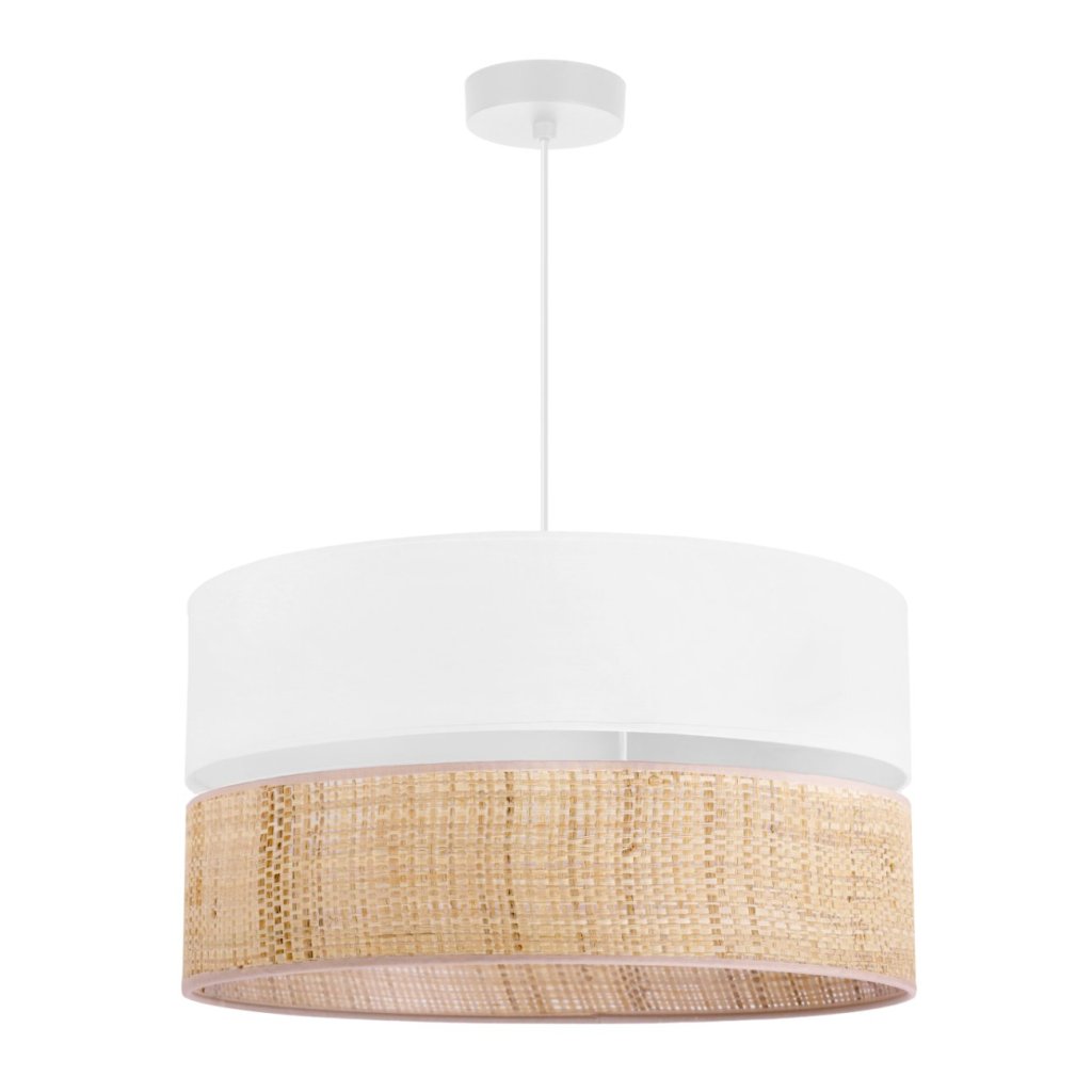 Závěsné svítidlo Rattan, 1x ratanové/bílé textilní stínítko, (fi 45cm)