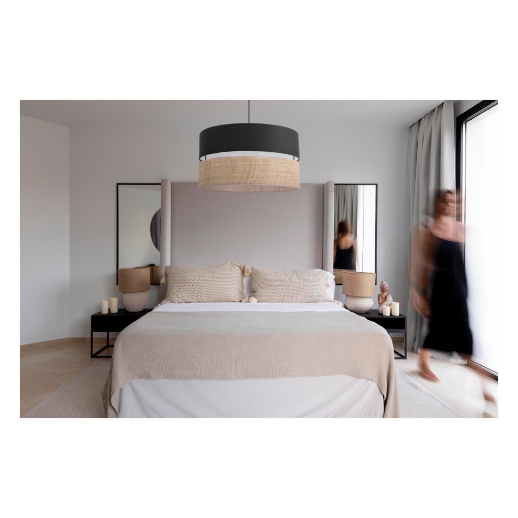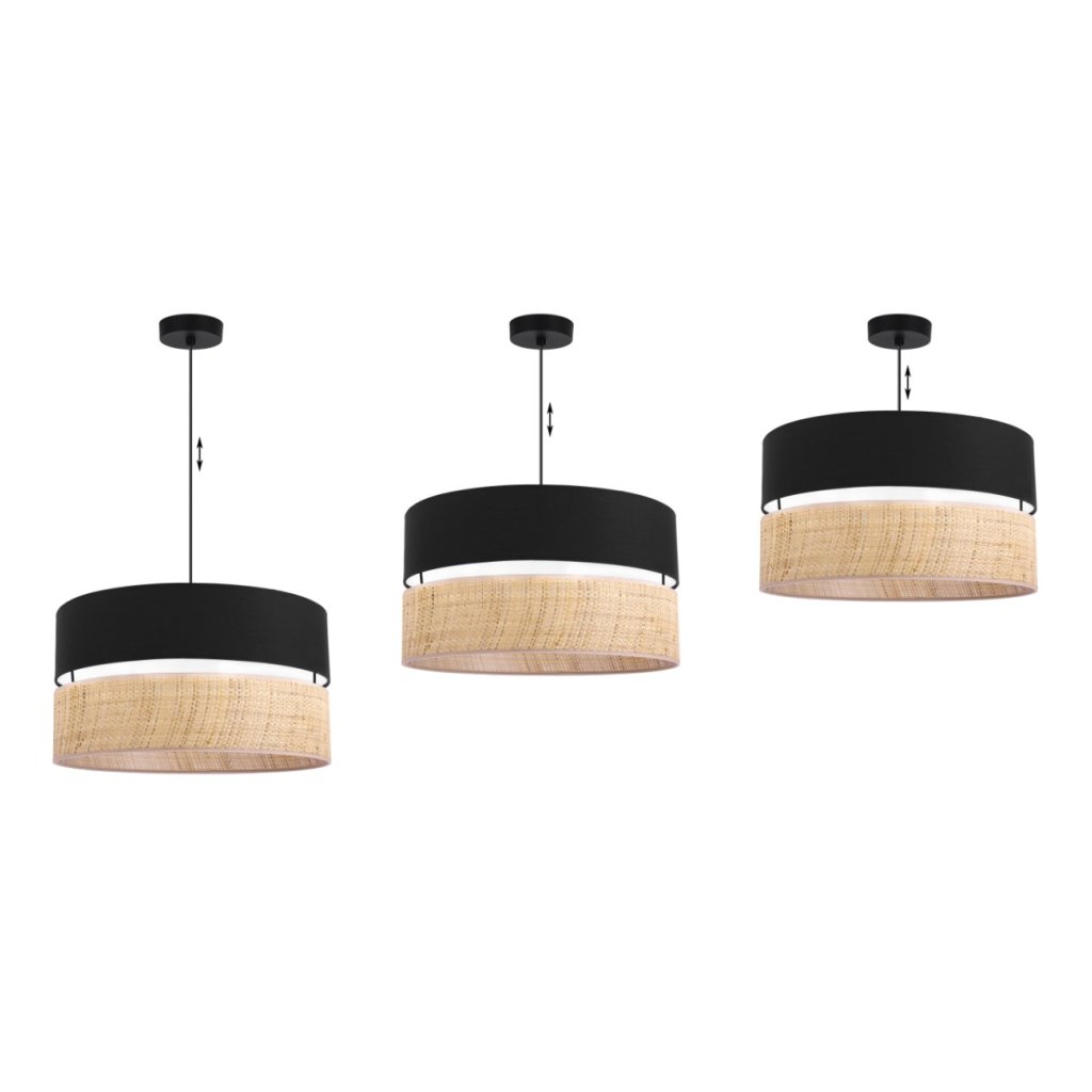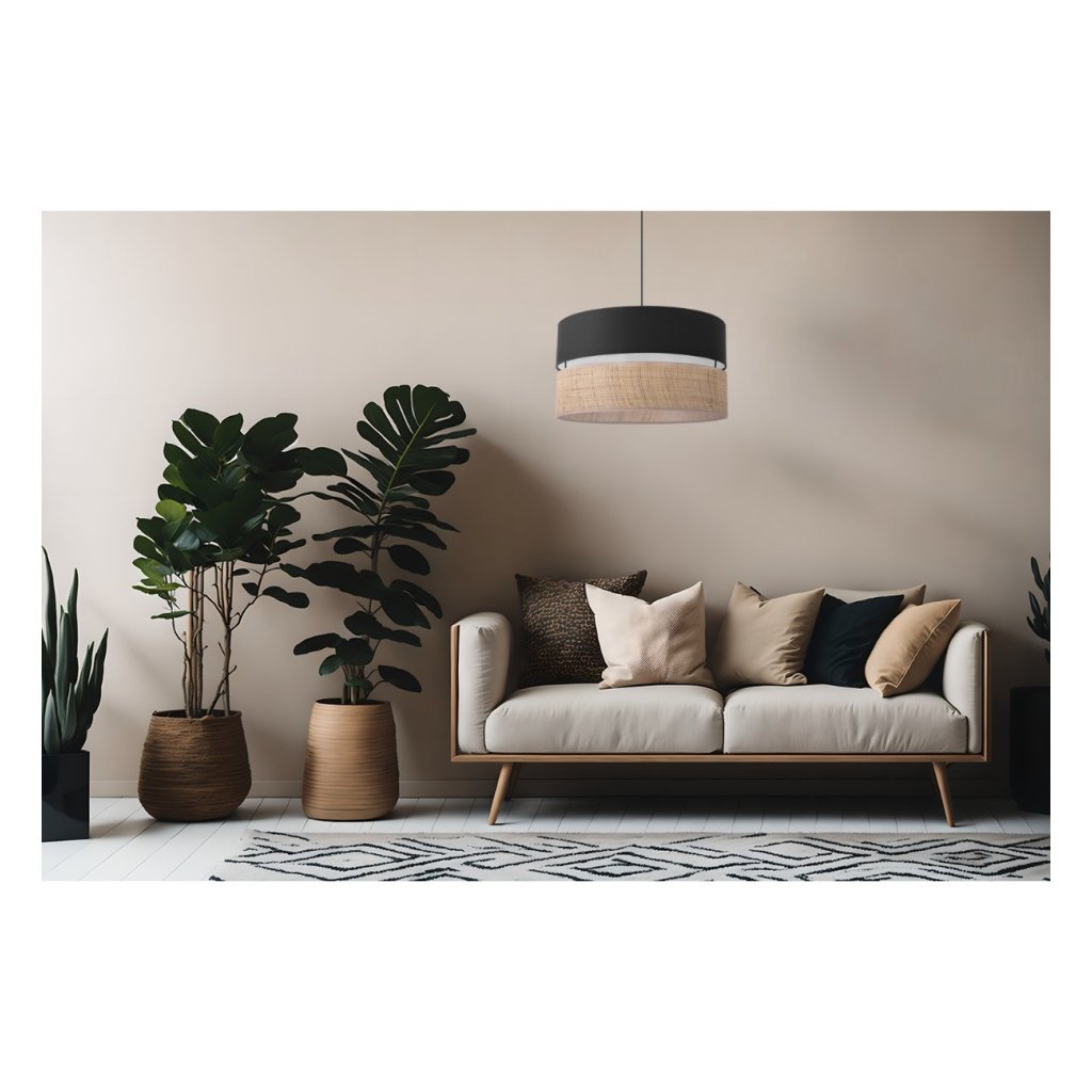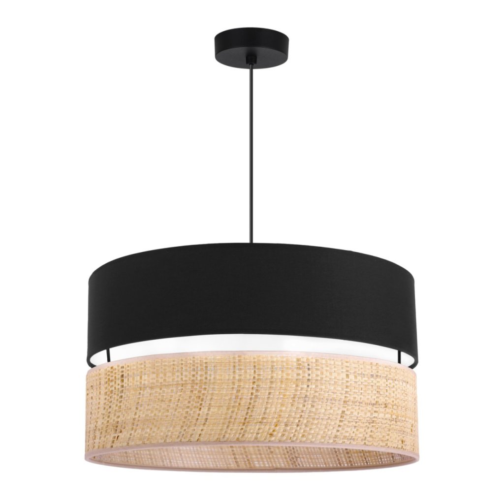 Závěsné svítidlo Rattan, 1x ratanové/černé textilní stínítko, (fi 45cm)