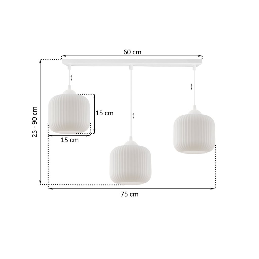 Závěsné svítidlo Riffle, 3x bílé skleněné stínítko, w