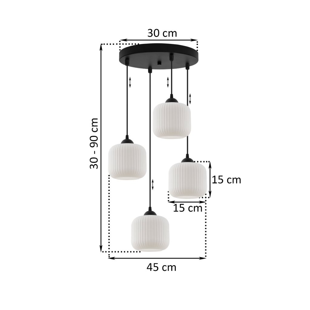 Závěsné svítidlo Riffle, 4x bílé skleněné stínítko, b, o