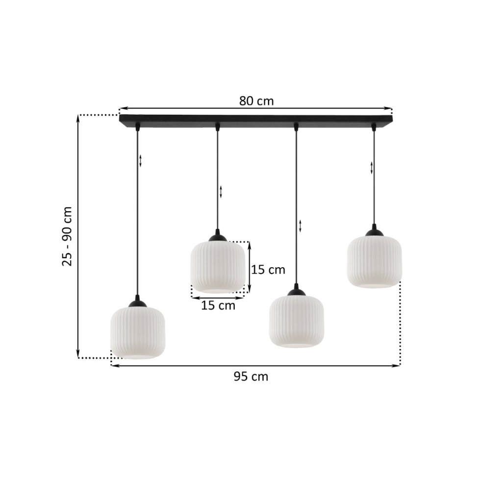 Závěsné svítidlo Riffle, 4x bílé skleněné stínítko, b