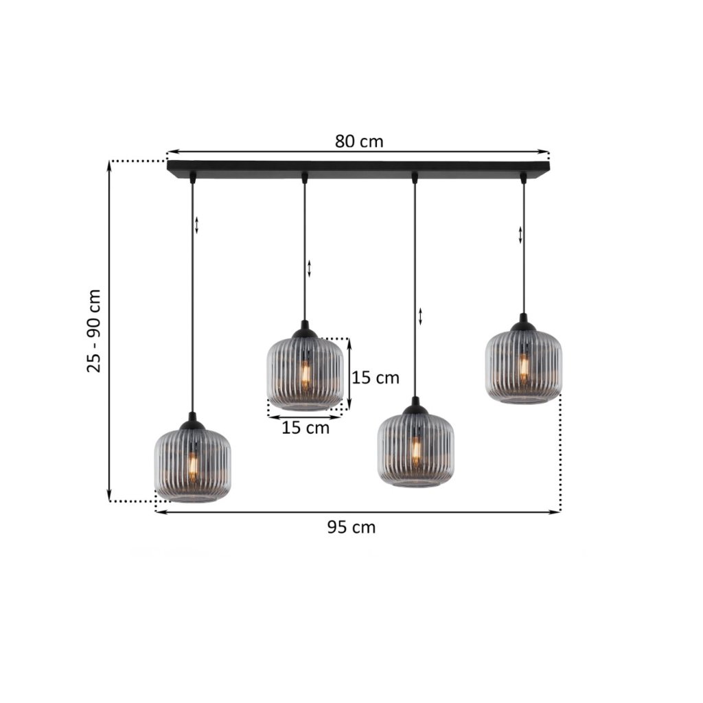 Závěsné svítidlo Riffle, 4x grafitové skleněné stínítko