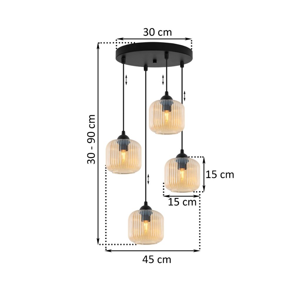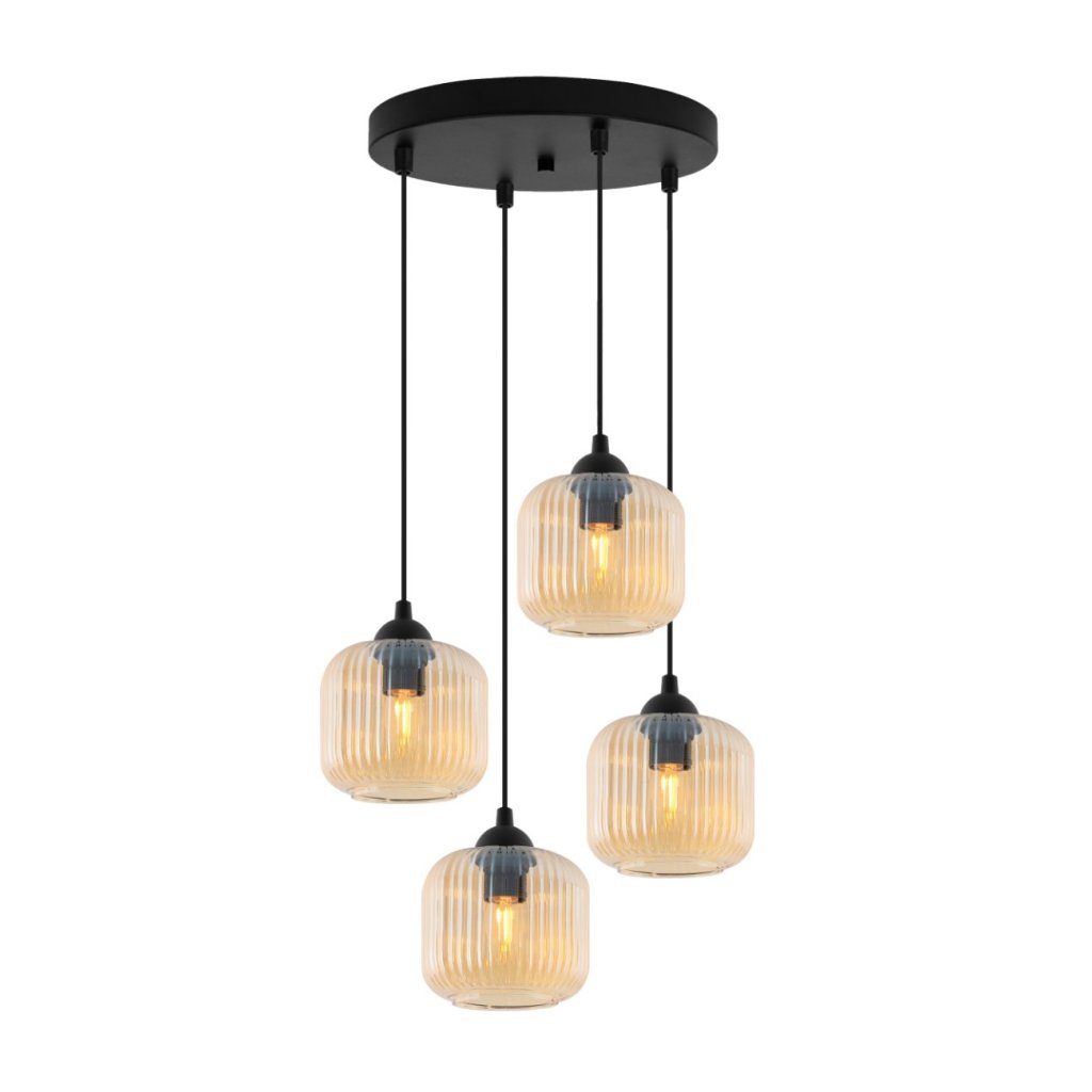 Závěsné svítidlo Riffle, 4x medové skleněné stínítko,
