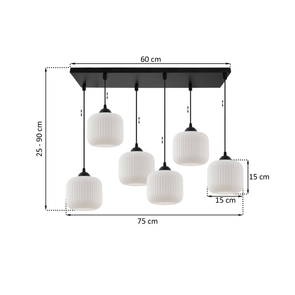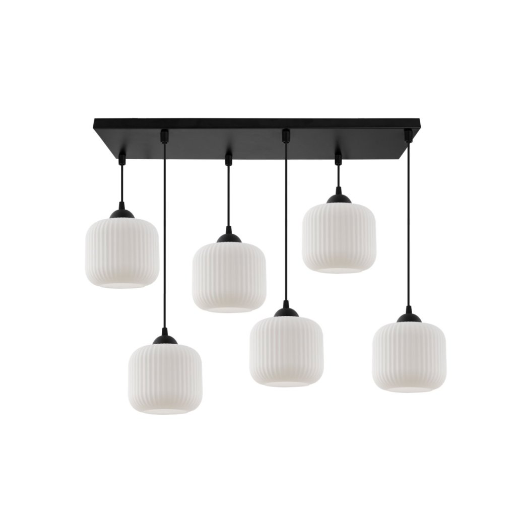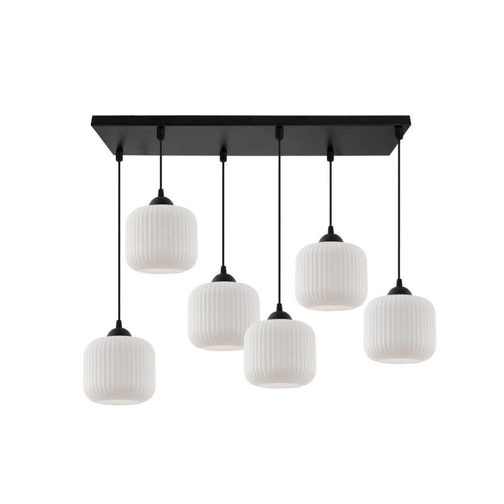 Závěsné svítidlo Riffle, 6x bílé skleněné stínítko, b