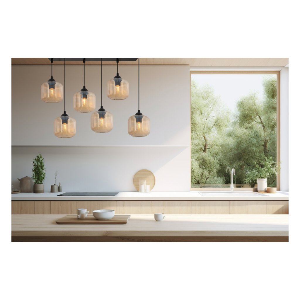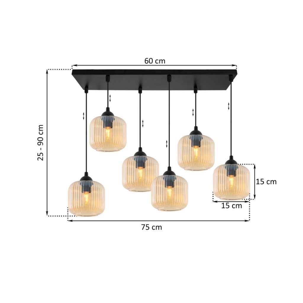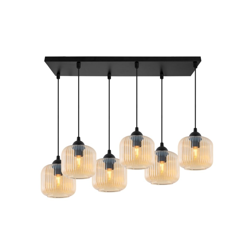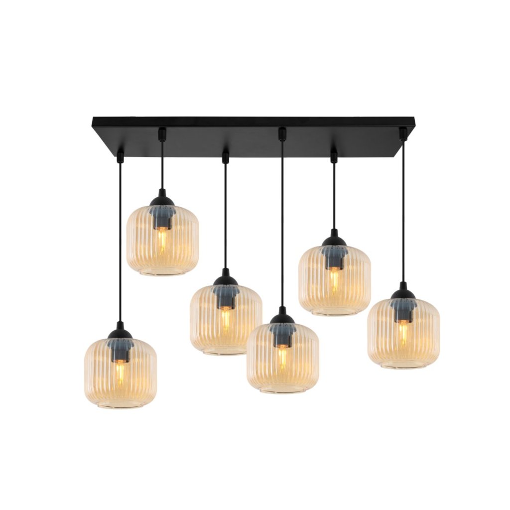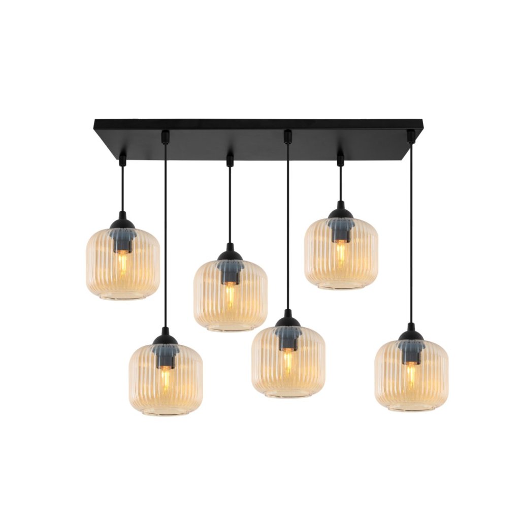 Závěsné svítidlo Riffle, 6x medové skleněné stínítko