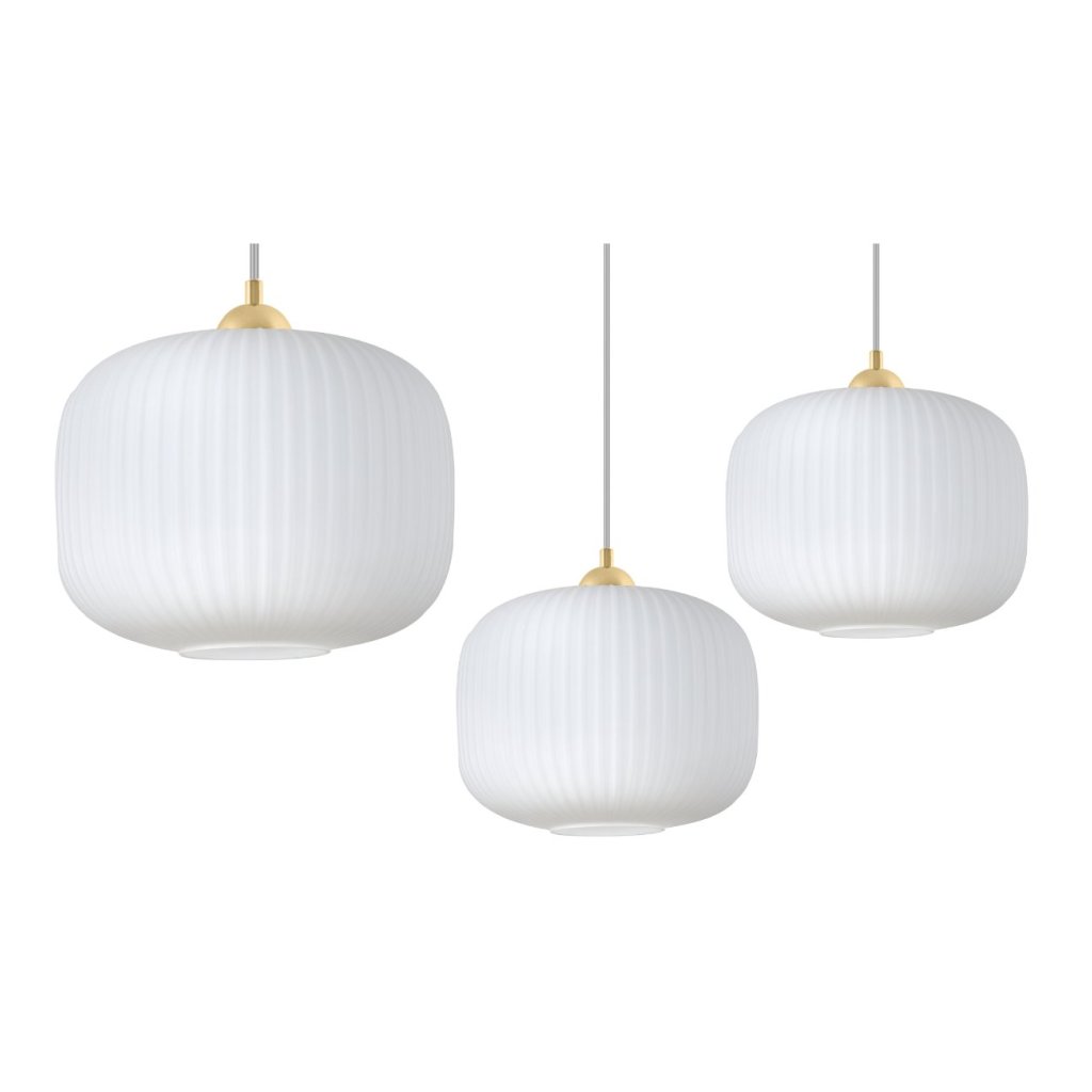 Závěsné svítidlo Riffle 3, 1x bílé skleněné stínítko, g