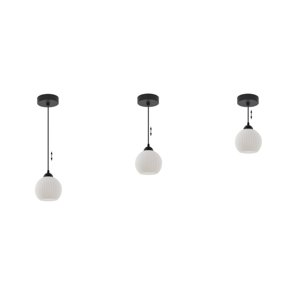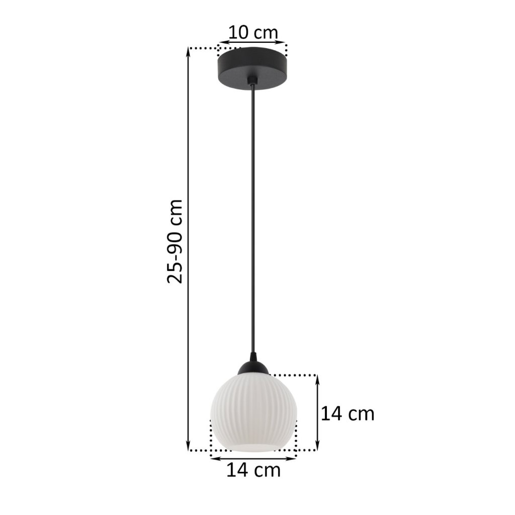 Závěsné svítidlo Riffle Round, 1x bílé skleněné stínítko, b