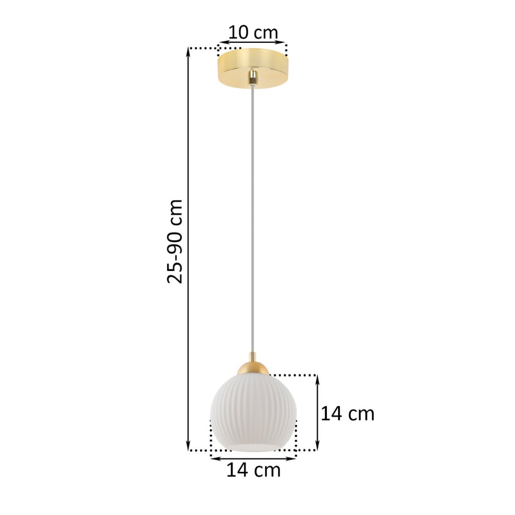 Závěsné svítidlo Riffle Round, 1x bílé skleněné stínítko, g