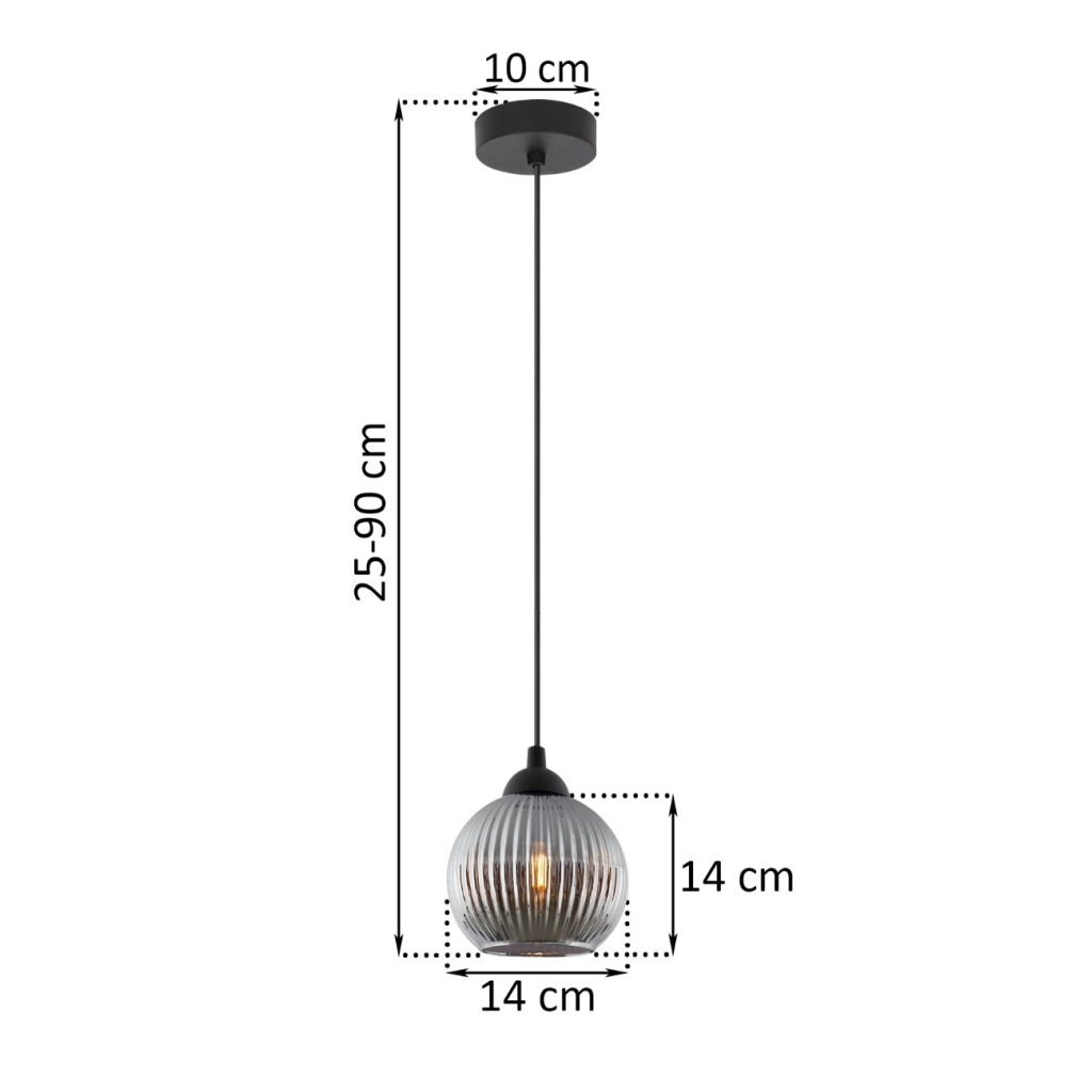 Závěsné svítidlo Riffle Round, 1x grafitové skleněné stínítko