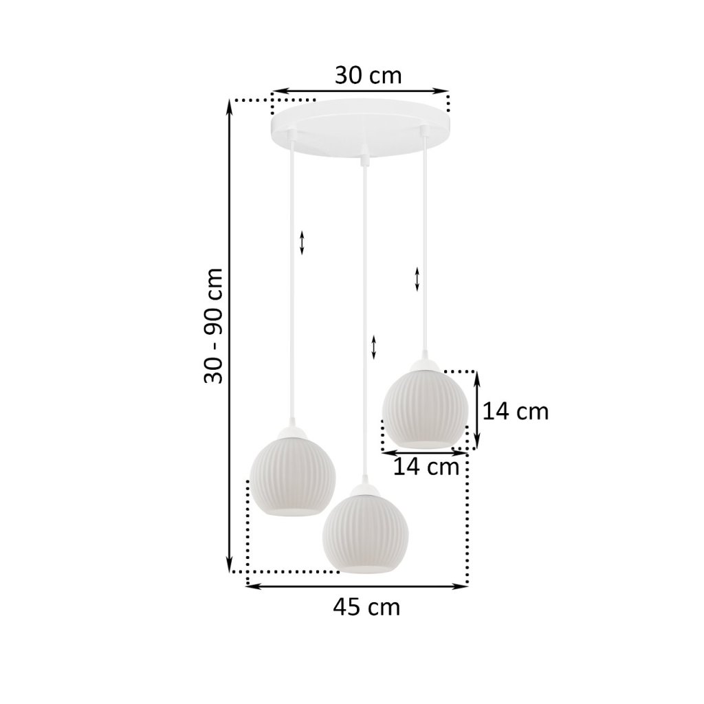 Závěsné svítidlo Riffle Round, 3x bílé skleněné stínítko, w, o
