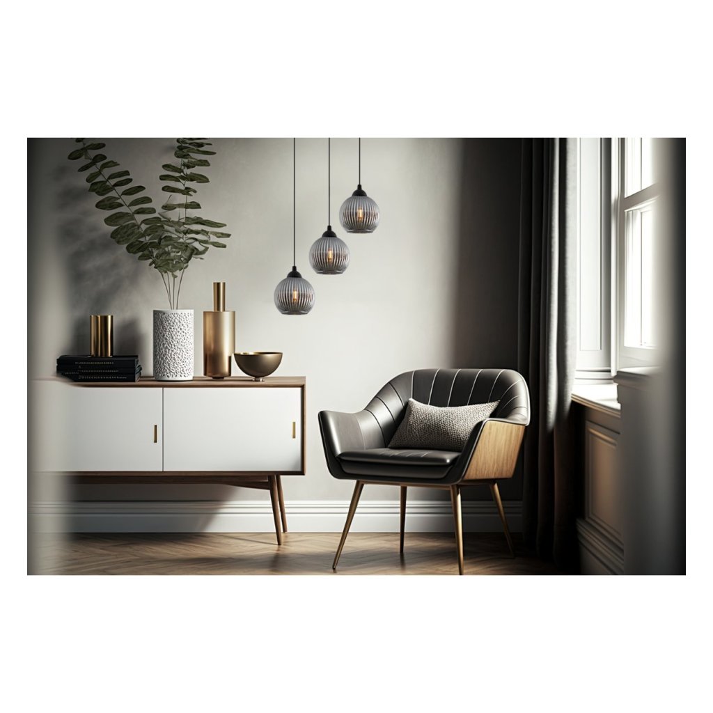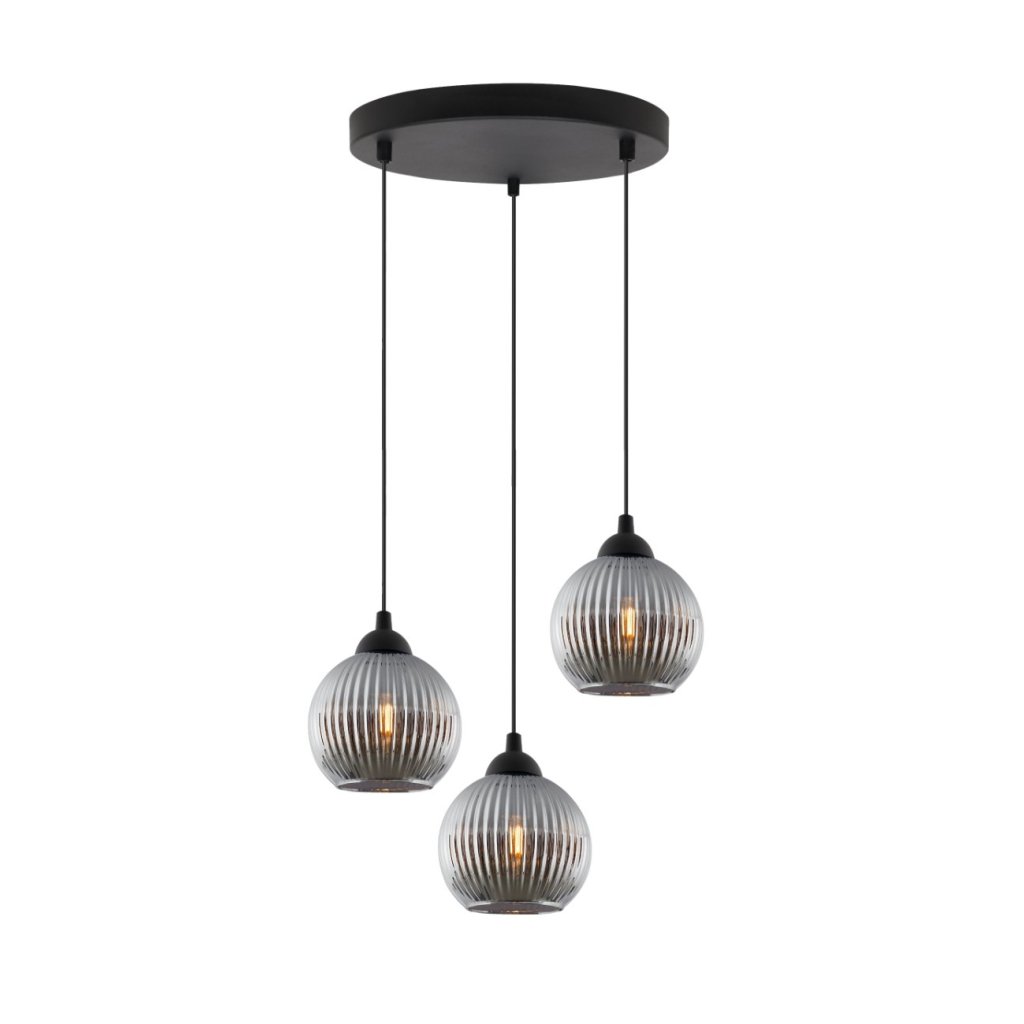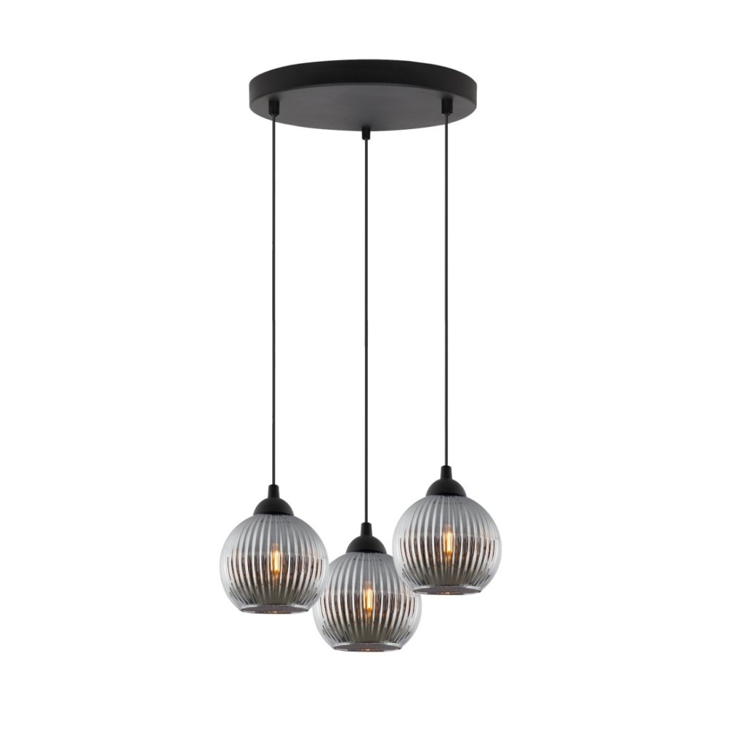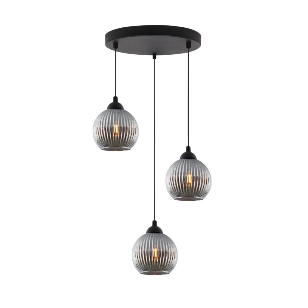 Závěsné svítidlo Riffle Round, 3x grafitové skleněné stínítko,