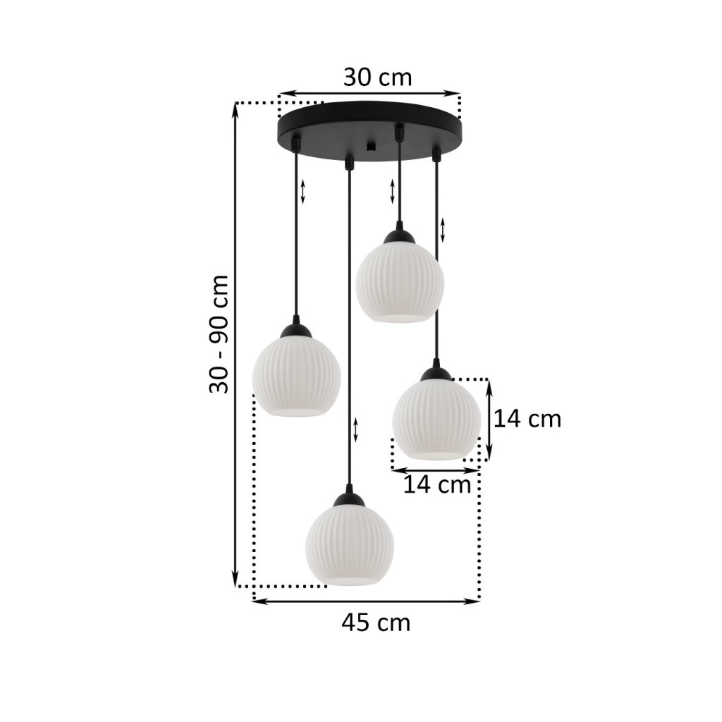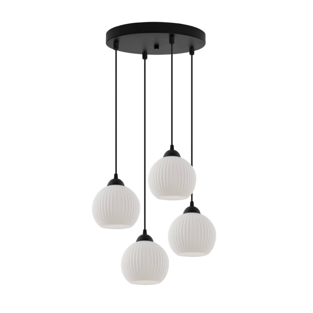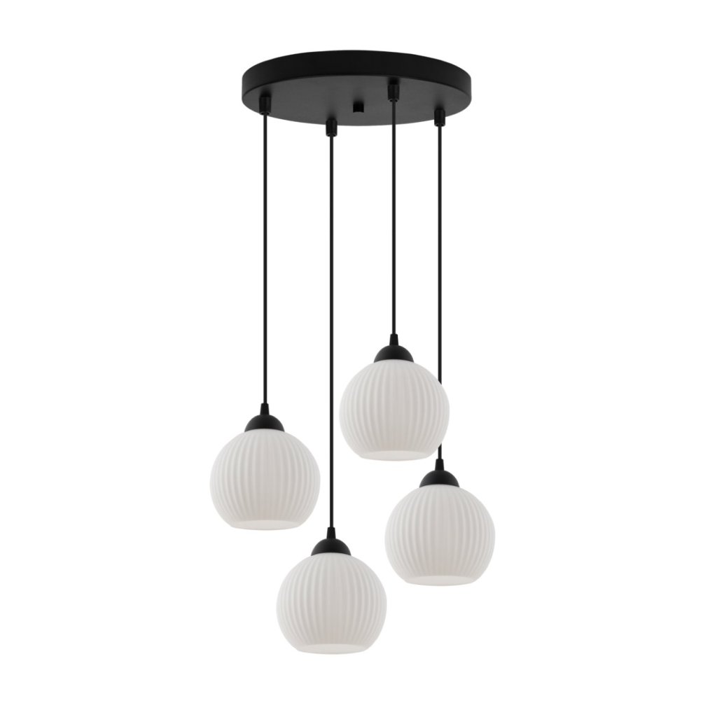 Závěsné svítidlo Riffle Round, 4x bílé skleněné stínítko, b, o