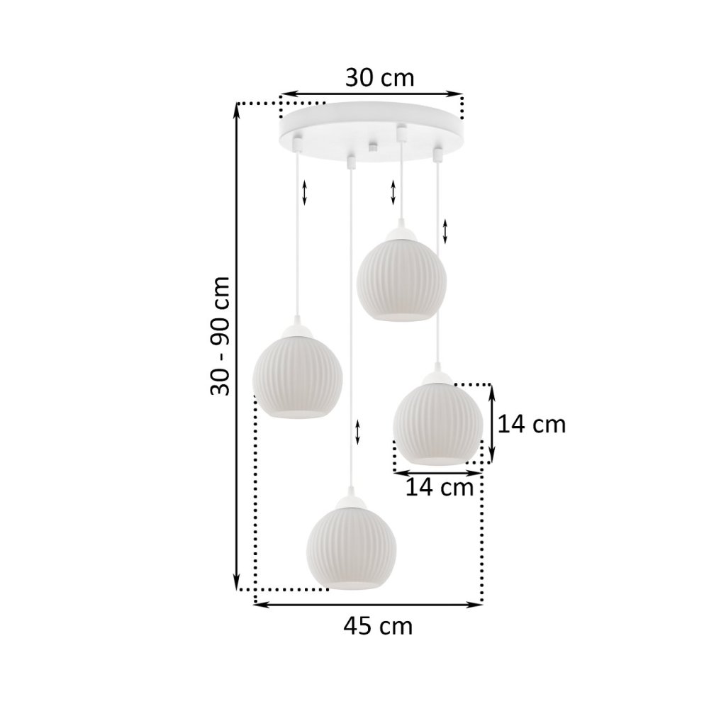 Závěsné svítidlo Riffle Round, 4x bílé skleněné stínítko, w, o