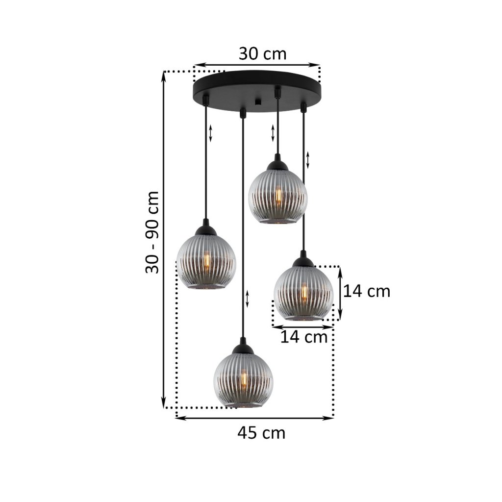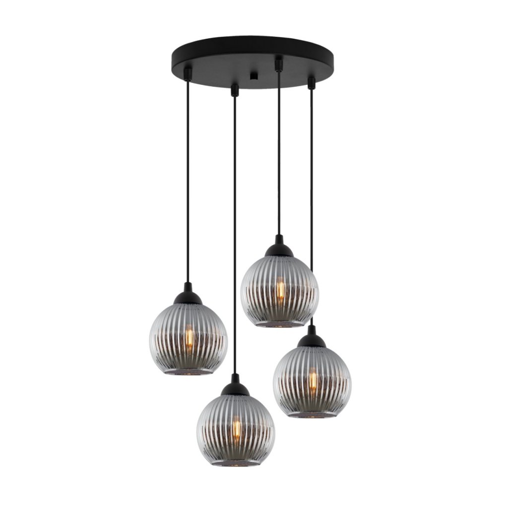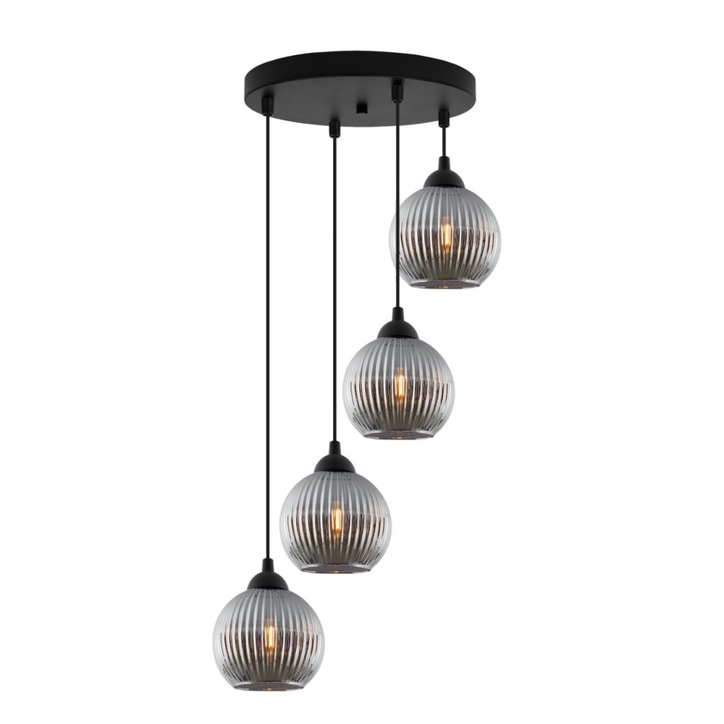 Závěsné svítidlo Riffle Round, 4x grafitové skleněné stínítko,