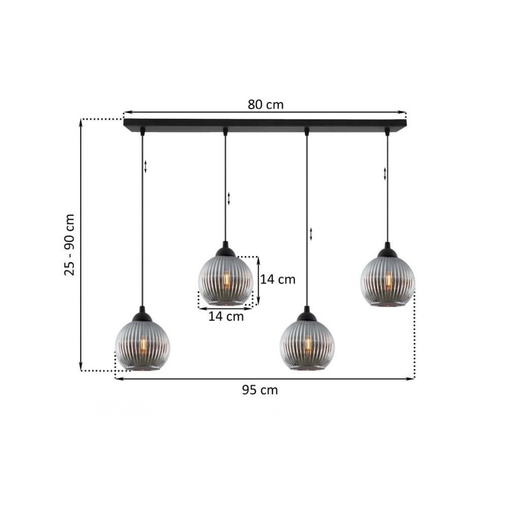 Závěsné svítidlo Riffle Round, 4x grafitové skleněné stínítko
