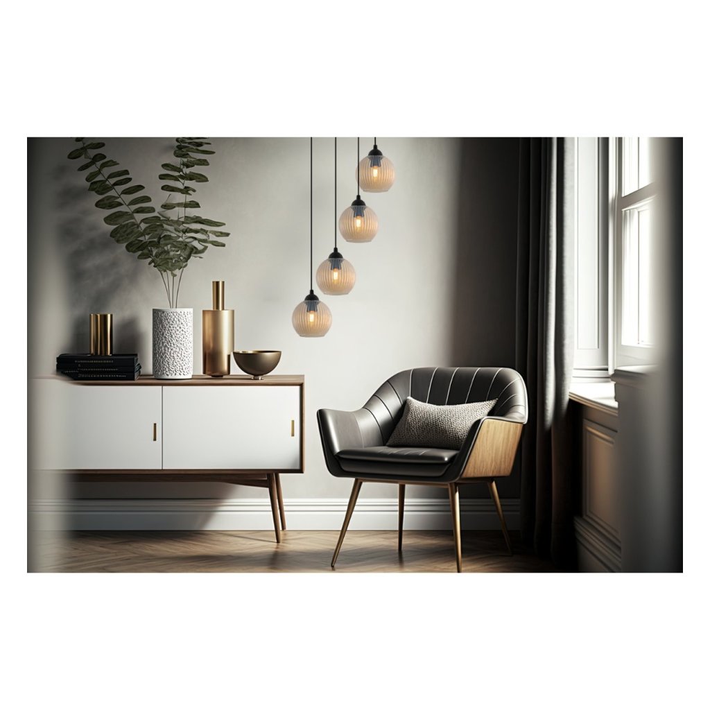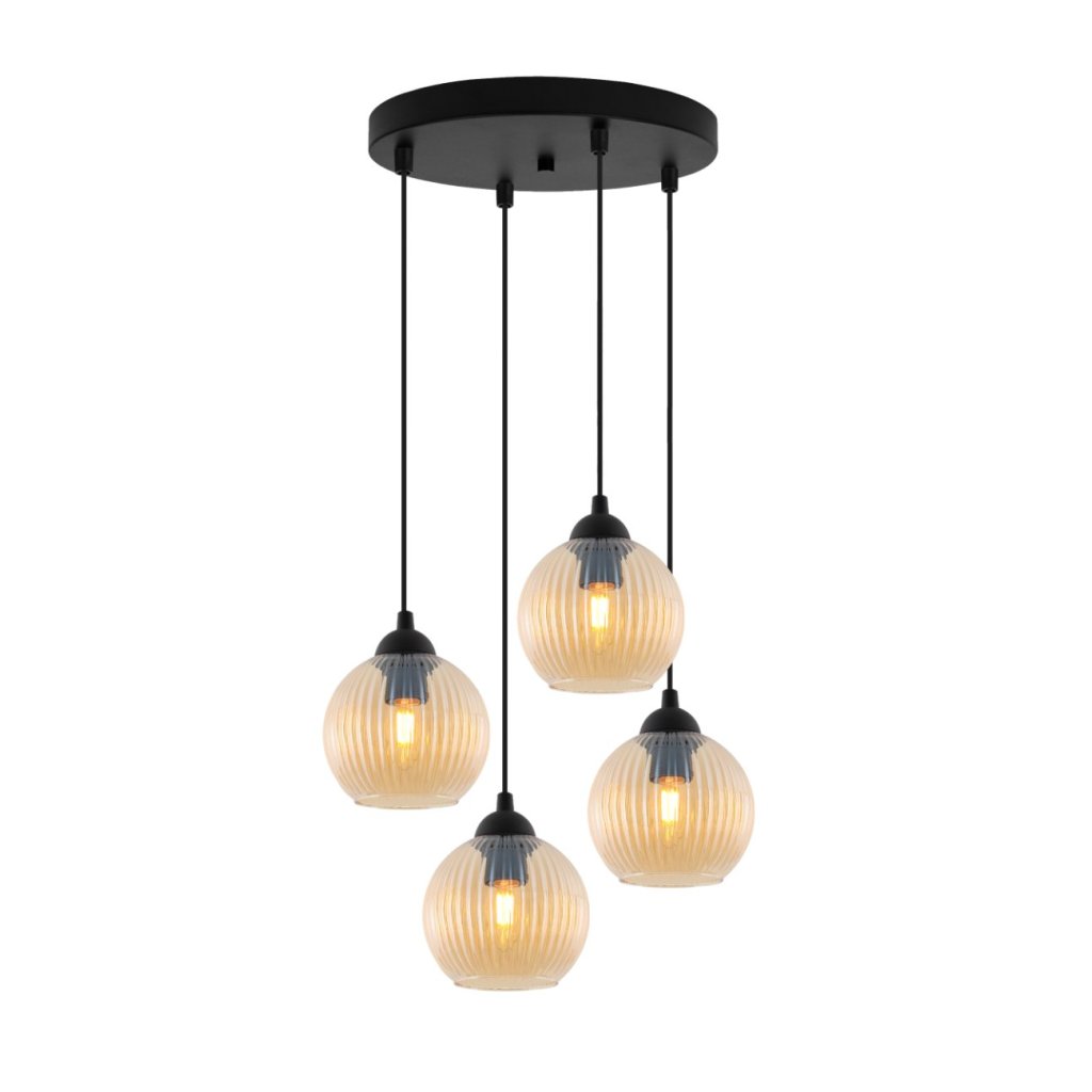 Závěsné svítidlo Riffle Round, 4x medové skleněné stínítko,