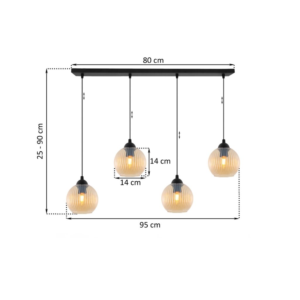 Závěsné svítidlo Riffle Round, 4x medové skleněné stínítko